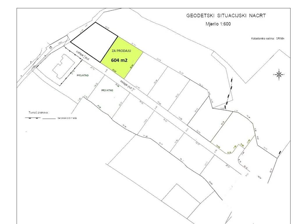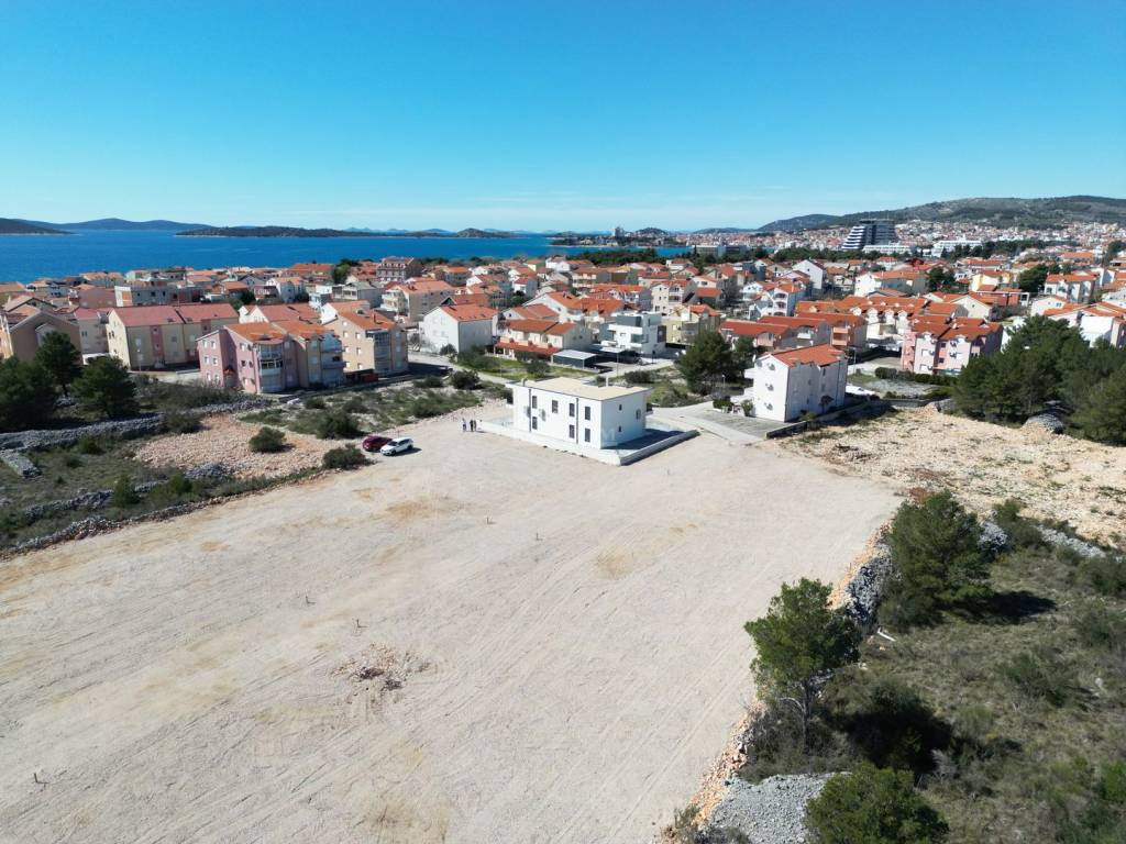 Srima, Vodice - prodaje se građevinsko zemljište s projektom. Zemljište površine 604 m2 pravilnog je oblika te se nalazi na mirnoj lokaciji od plaže je udaljen oko 400 m. Projekt je napravljen i Zahtjev za građevinsku dozvolu je već predan. U blizini se nalazi potrebna infrastruktura(voda, struja).