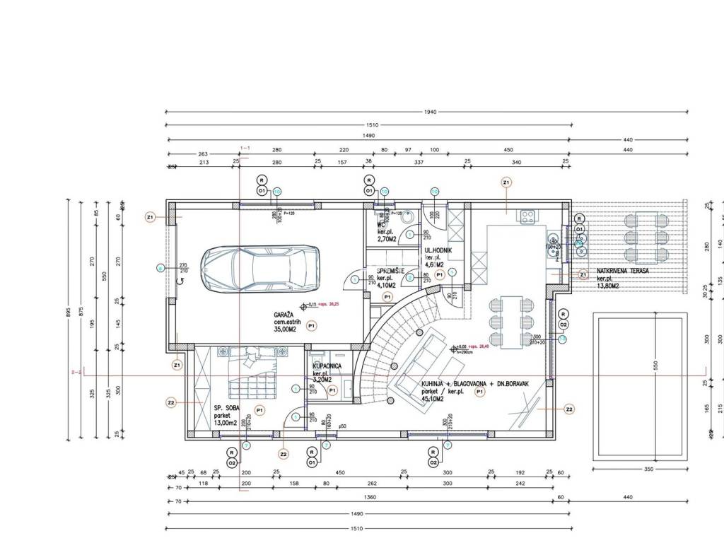 - Garage: 35 m2, con accesso diretto alla casa