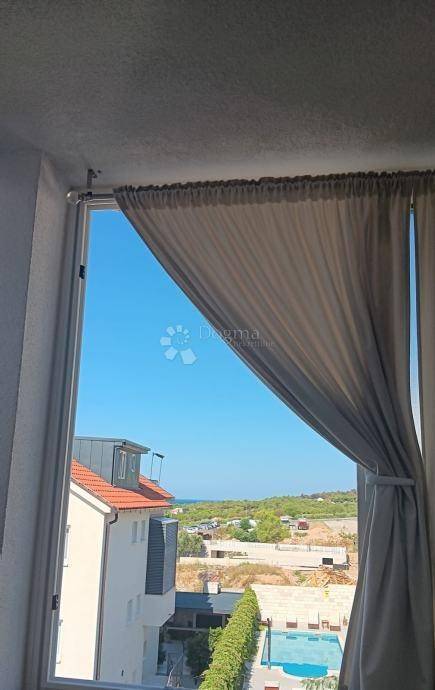 A very neat and bright two-bedroom apartment of 44.33 m is for sale, located on the second floor of a small residential building. The apartment consists of two comfortable rooms with a functional layout and a 7.11 m loggia, which is enclosed with sliding glass panels that can be fully opened if desired. From the loggia, as well as from one of the rooms, there is a beautiful sea view that gives the space a particularly pleasant and relaxing atmosphere.