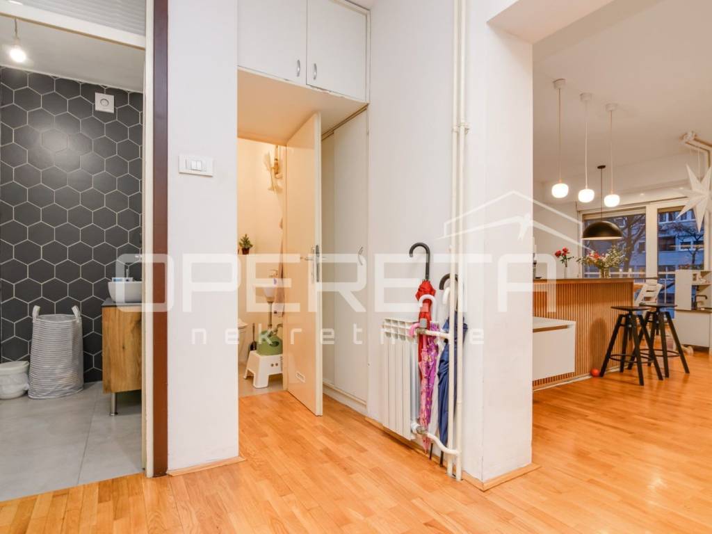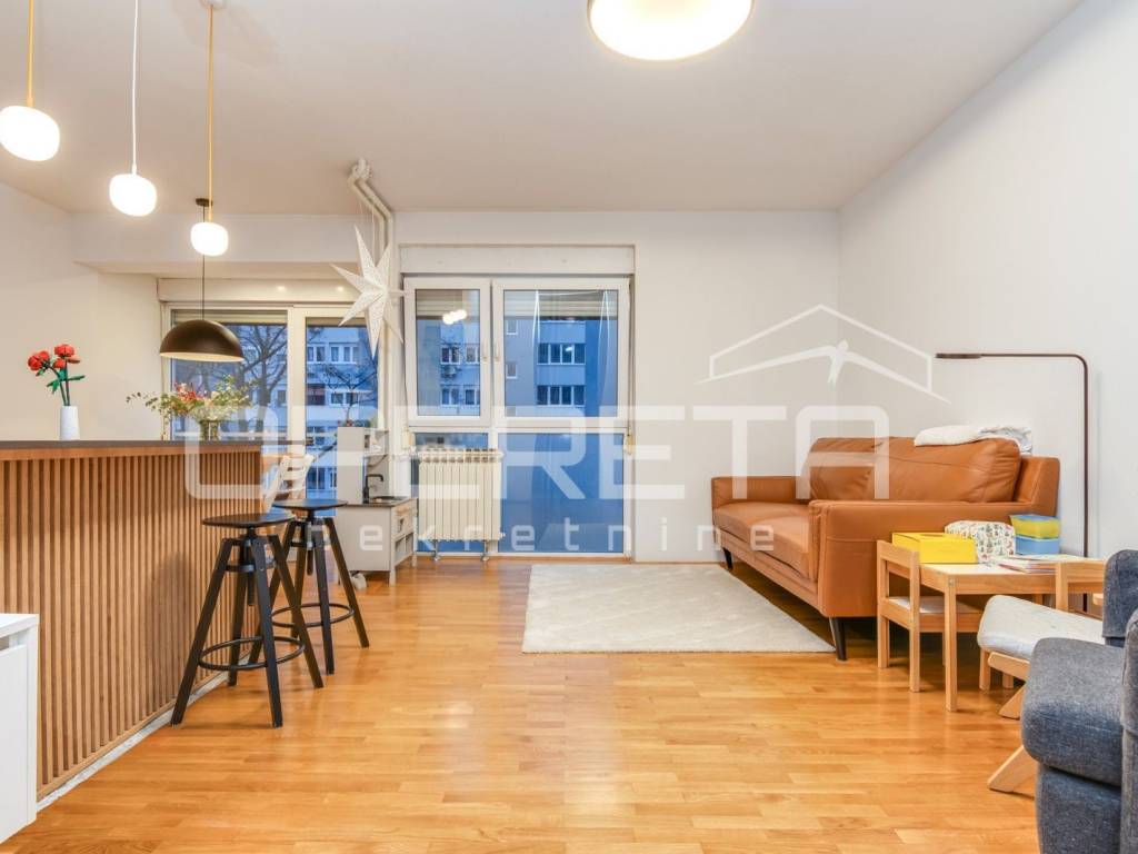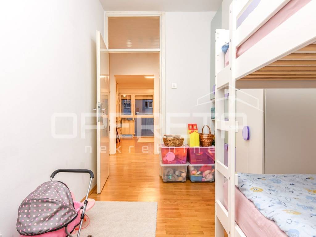 Odličan 3 soban stan na vrlo traženoj lokaciji sa svim sadržajima u neposrednoj blizini. Odličan raspored sa 2 spavaće sobe na sjevernoj strani, kupaonica i odvojeni wc, te dnevni boravak i kuhinja na južnoj strani. Dobro održavan, kompletno adaptiran, bez većih ulaganja. Zgrada sa lliftom, spremište u podrumu. Preporuka!