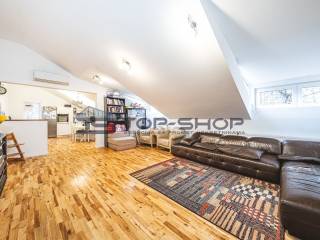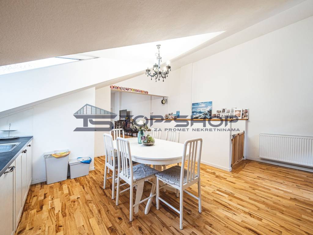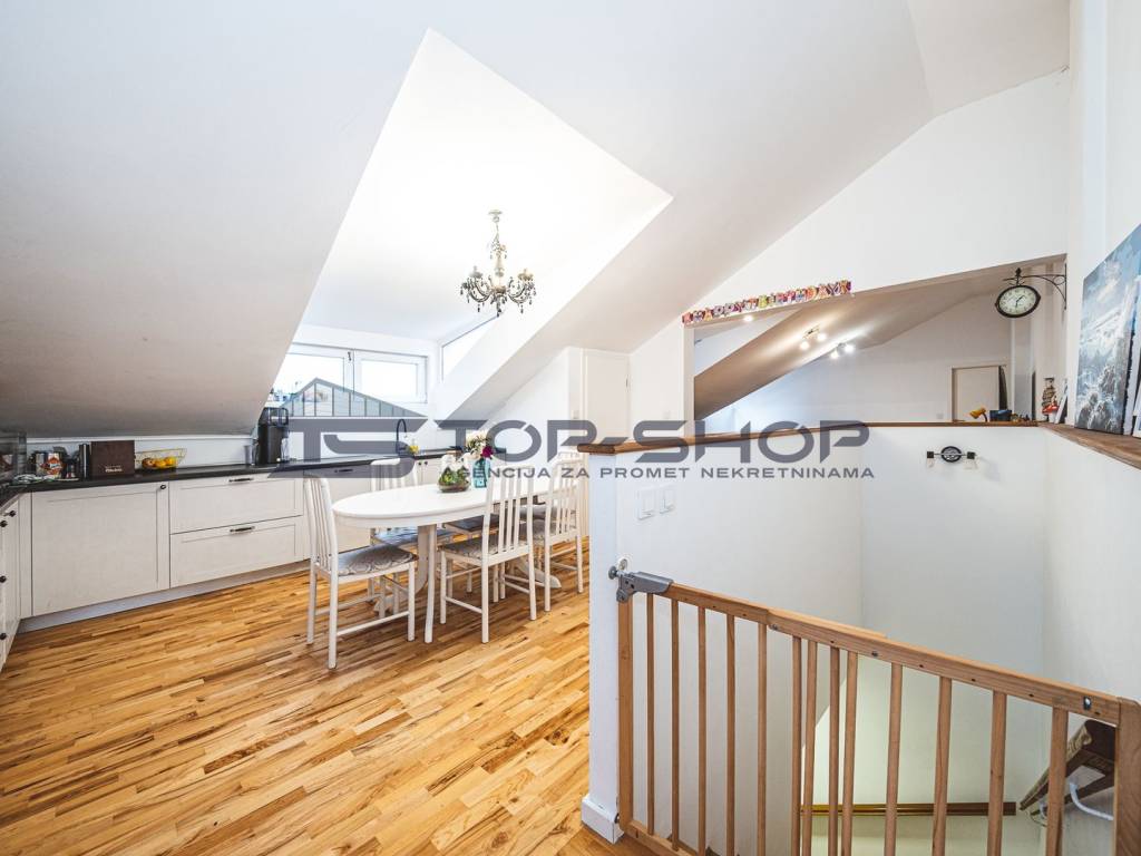 Kroz glavni ulaz vaši gosti ulaze u hodnik u kojem mogu ostaviti kapute i cipele te se hrastovim stubištem penju na gornju etažu, bez potrebe prolaska kroz ostale sobe. Dočekuje ih prostrani otvoreni prostor koji se prilagođava svim vašim potrebama - zajedničko kuhanje u novoj kuhinji izrađenoj po mjeri, svečani objed za obiteljskim stolom, opuštanje uz dobru knjigu, filmska večer uz izležavanje na garnituri koja može primiti cijelo društvo ili pak pravi mali plesnjak uz pravu glazbu i bez brige smetate li susjede ispod vas. I kao poseban užitak, kava uz sunce i cvrkut ptica na terasi koja kao da nije u istome gradu.