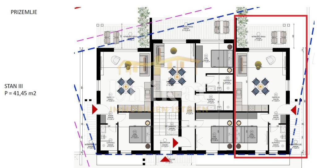 The apartment is located in a residential building with a total of 5 residential units, in the quiet place Fuškulin near Poreč. The distance to the sea is 3.5 km. The neighborhood is mostly private holiday homes, and since the building is located on the edge of the village, the position is very quiet, and the place is surrounded by vineyards and nature.