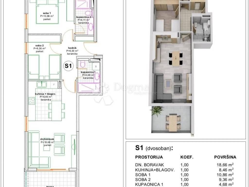 Luxurious apartment in a privileged location in Makarska - just 2 minutes walk from the beach! A top-quality apartment in an attractive new building is for sale, located in one of the best locations in Makarska, just 2 minutes walk from the beach! The building is in the final stage of construction and is ready for technical inspection and obtaining an occupancy permit. This exclusive property was built with a special emphasis on quality and luxury. High-quality exterior and interior joinery, oak parquet and large-profile ceramic tiles and plenty of natural light make these apartments the perfect choice for both living and a safe investment. Apartment S1 - 1st floor Area: 67.94 m² Price: €6,000/m² Layout: - living room - dining room with kitchen - Two comfortable bedrooms - Modern bathroom - Hallway - terrace of 11.62 m² Price of a parking space €15,000.00, possible purchase of a garage space. Due to its superb location and quality of construction, this apartment represents an ideal home or investment with excellent rental potential. For more information or to arrange a viewing, please contact: Leon Lužija Andrijašević – licensed agent +385 95 855 8408 leon.luzija@dogma-nekretnine.com Don't miss the opportunity for a top-notch property in one of the most sought-after locations in Makarska! ID CODE: ST3353 Leon Lužija Andrijašević Agent s licencom Mob: 095/855-8408 Tel: 01/647-3011 E-mail: leon.luzija@dogma-nekretnine.com www.dogma-zagreb.com