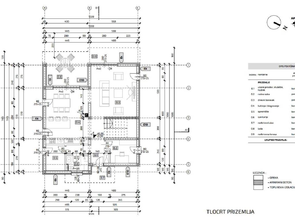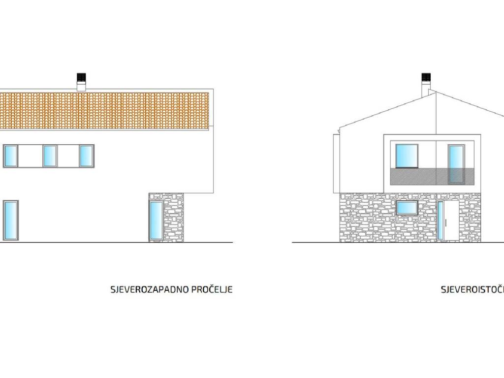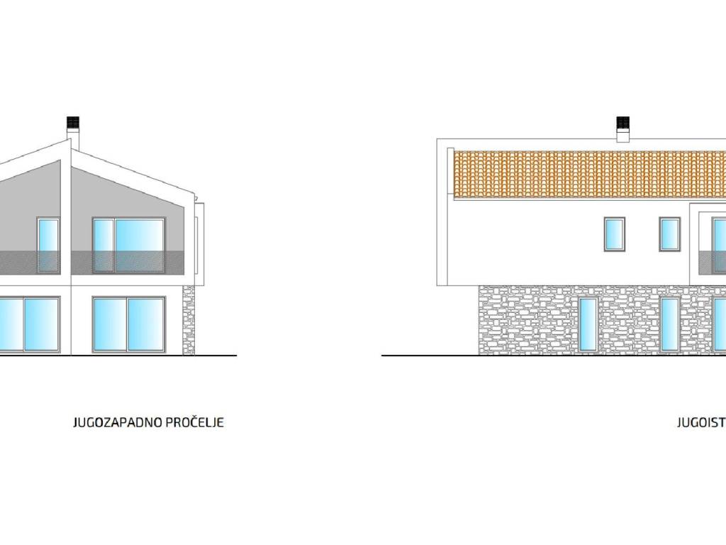 Na prodaju je građevinsko zemljište površine 985 m s pravomoćnom građevinskom dozvolom i plaćenim komunalijama. Predviđeni objekt modernog dizajna površine 180 m uključuje veliki bazen, ljetnu kuhinju te natkriveni parking u dvorištu. Pristup zemljištu omogućen je asfaltiranim putem, a sva infrastruktura nalazi se na samoj parceli.