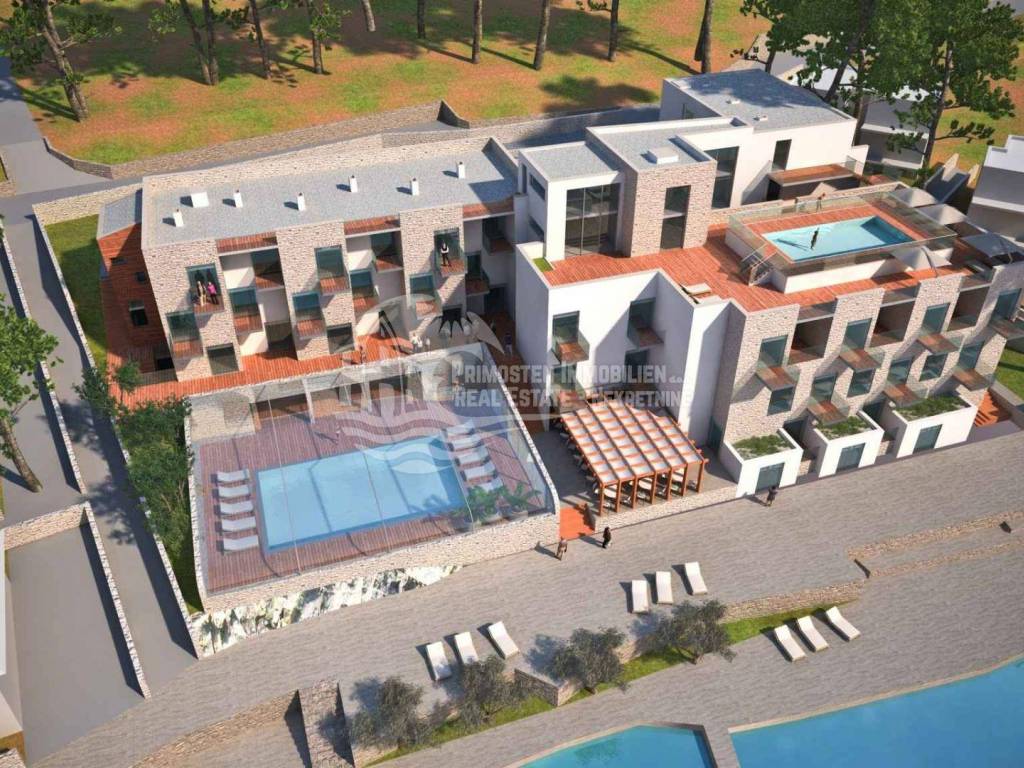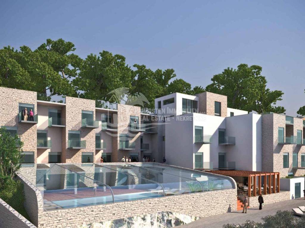 Hotelski kompleks prvi red do mora koji je projektiran kao samostojeći objekt, sa osnovnom turističko ugostiteljskom namjenom i kao jedinstvena funkcionalna cjelina, oblikovno povezana u skladnu kompoziciju suvremenog arhitektonskog izraza. Na sjeverozapadnoj strani parcele riješen je ulaz i priključenje sa javnog puta preko rampe kojom se stiže na parkirališni plato hotela. Uz hotel je riješena samo VIP-parking zona 10 PM. Sa platoa spuštamo se na ulazni trg- klauster hotela pješačkom rampom uz hotel ili pak polukružnim stubama na ulaznoj, sjeverozapadnoj strani parcele. Unutar ugostiteljsko turističke zone parkiranje vozila se planira riješiti na zajedničkom parkiralištu zone odgovarajućeg kapaciteta sa sjeverozapadne strane zemljišta kao zajedničko javno parkiralište. Namjena hotela je ugostiteljsko turistička, planiran je hotel sa četiri zvjezdice. Hotel Forum će imati 40 luksuznih soba s pogledom na more, restoran, caffe bar sa prostorom za projekcije, spa zonu sa fitnesom, solarij, sauna, masaža, kozmetički salon, prostor za opuštanje, 2 bazena, privatna plaža i šetnica uz lungo mare gdje se planiraju tri suvenirnice prodajom tiska, te ostale prateće prostorije i usluge vezano za funkcioniranje hotela. Hotel Forum je ukupne bruto površina 3838 m2, katnosti S + Pr + 2, a bruto površina zemljišta iznosi ca. 6.000 m2. Općina je ustupila koncesiju na još dodatnih 4.000m² za parking i dječje igralište.