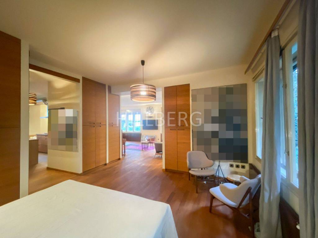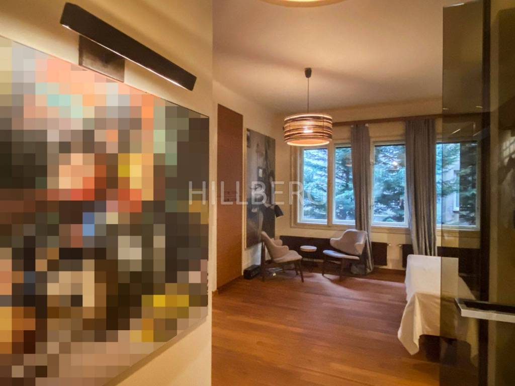 It has an area of ​​115 m2, located on the 1st floor of an older building, surrounded by greenery.