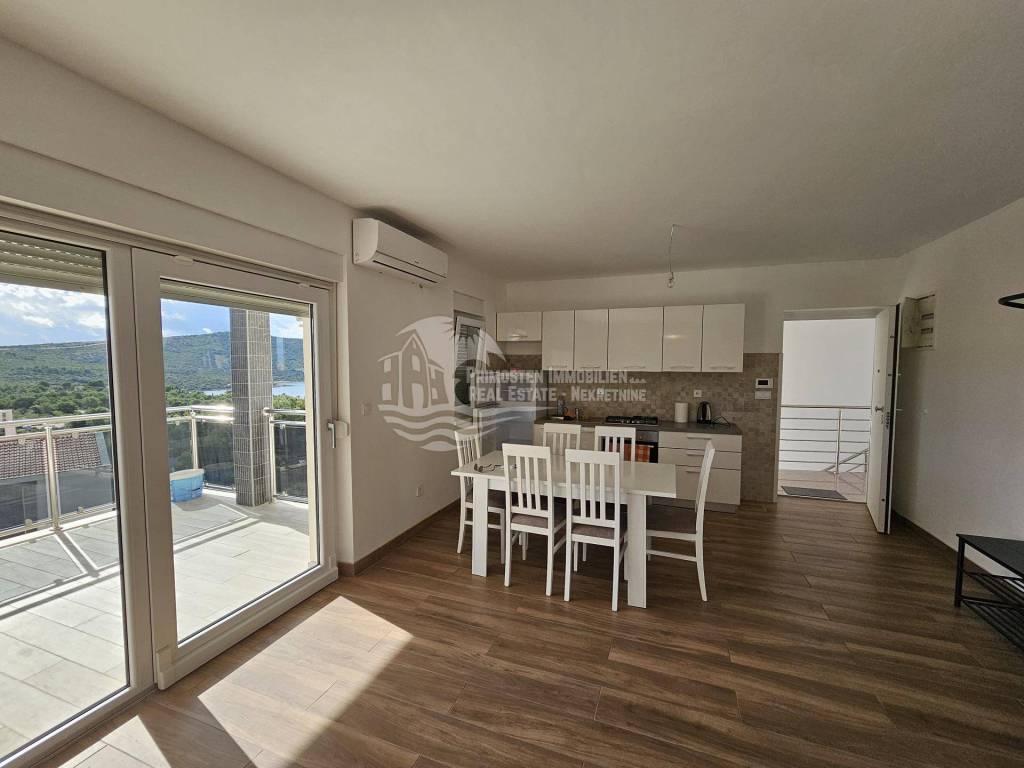 The new apartment in Primosten was built in 2021 and is in a top location. The apartment is on the second floor and is located in a residential building with a total of six residential units. The rooms are divided into a spacious and air-conditioned kitchen-living room, covered balcony with unobstructed sea views, hallway, two bedrooms and a bathroom. The technical equipment includes air conditioning and a hands-free system. The apartment is sold furnished and was not rented to tourists. The distance to the sea is 250m and to the center of Primosten approx. 850 m.