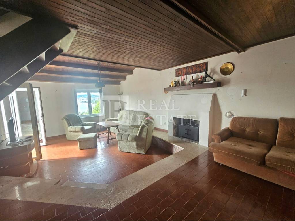 Di fronte all'appartamento più piccolo si trova una terrazza più piccola, mentre di fronte all'appartamento più grande si trova un'ampia terrazza accessibile dal soggiorno e dalla cucina. La terrazza offre una fantastica vista panoramica sul Golfo del Quarnero. Inoltre, ogni stanza della casa offre una splendida vista sul mare blu.