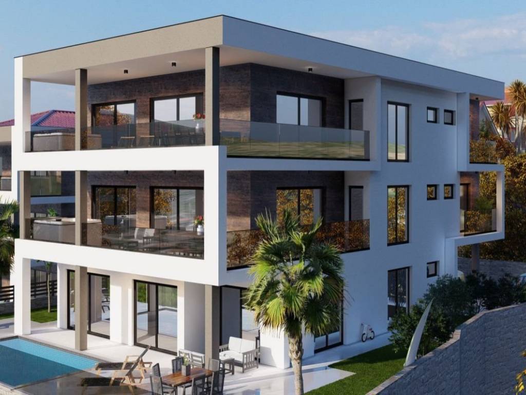 Otok Krk, Vrbnik, prodaja ekskluzivnog apartmana površine 145 m2, na prvom katu apartmanske zgrade, s pogledom na more, 600 m od plaže. Apartman se sastoji od dnevne sobe, kuhinje, blagovaone, dvije spavaće sobe s vlastitim kupaonicama i balkonima, spavaće sobe, kupaonice, vešeraja, hodnika, terase i spremišta u podrumu. Vrhunska kvaliteta gradnje i opreme, ALU stolarija, podno grijanje, klimatizacija, fitness soba, sauna, lift, dva parkirna mjesta.