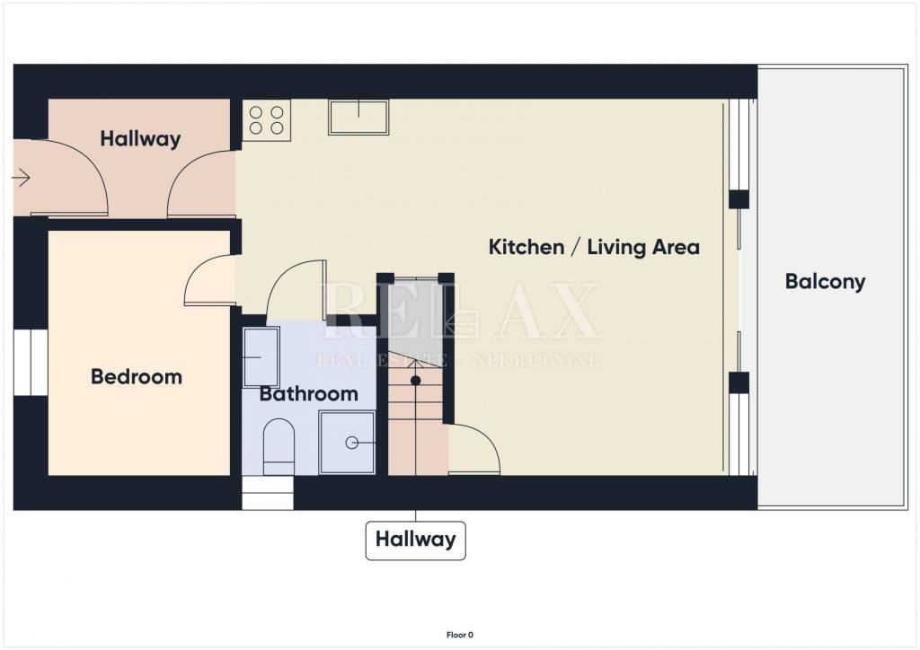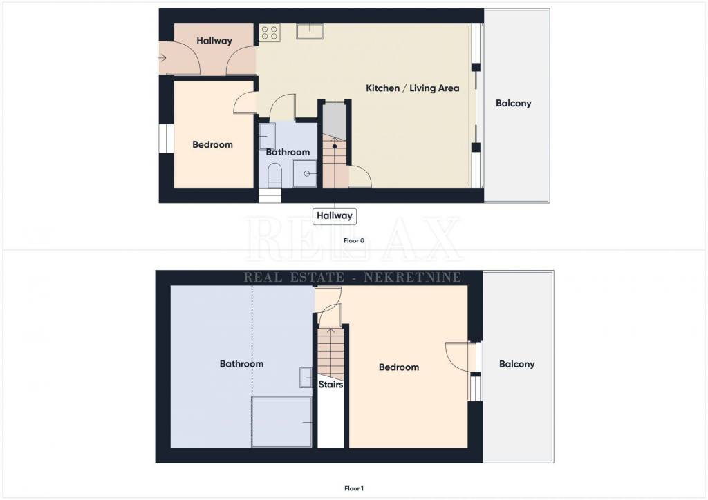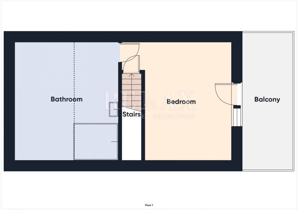 L'appartamento si sviluppa su due piani – rialzato e primo piano. Al piano inferiore si trovano un ingresso, soggiorno con accesso al balcone dotato di barbecue e splendida vista mare, ripostiglio, camera da letto e bagno. Al piano superiore si trovano un'altra camera da letto, una sala fitness con jacuzzi e predisposizione elettrica per un'eventuale sauna, oltre a un altro balcone con vista panoramica sul mare.