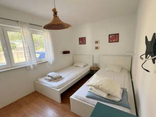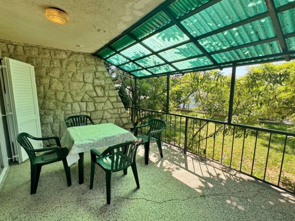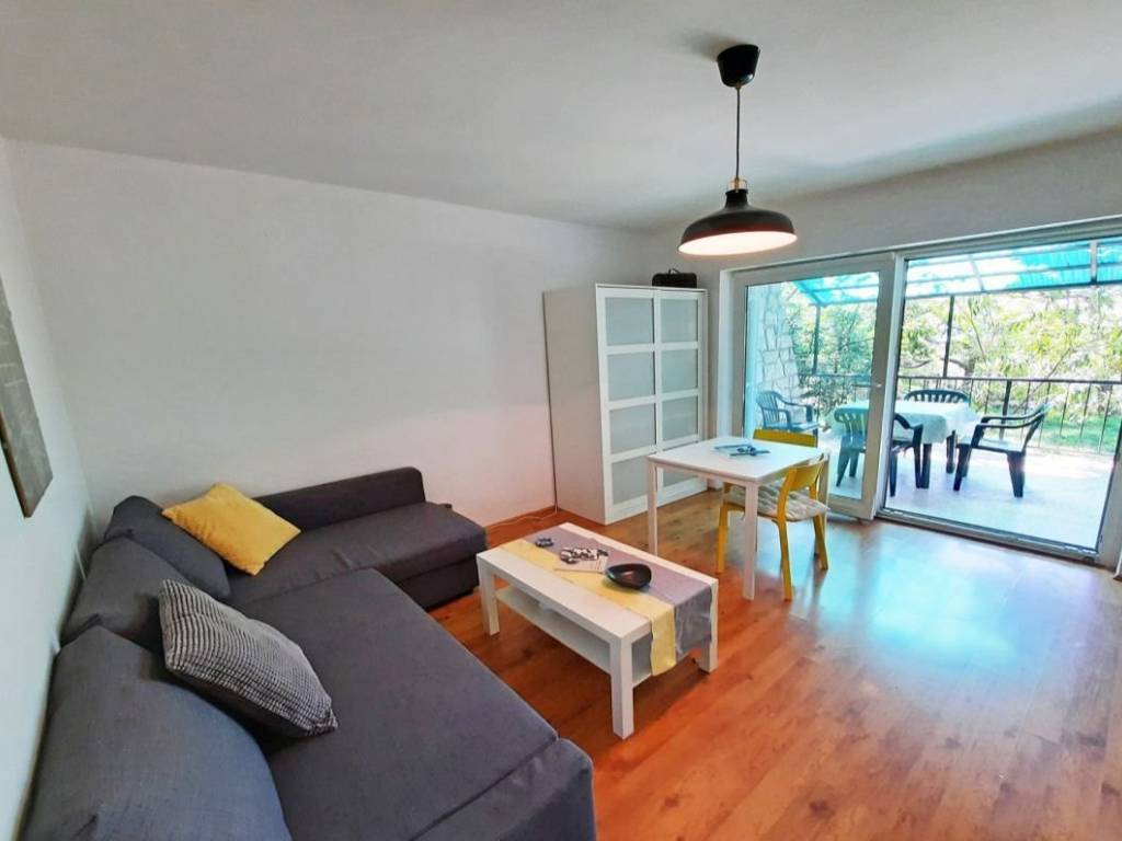 Otok Krk, grad Krk, prodaja opremljenog apartmana površine 35 m2, na atraktivnoj lokaciji, u drugom redu do mora. Apartman se sastoji od dnevne sobe, blagovaone, kuhinje, jedne spavaće sobe, kupaonice te natkrivene terase površine 14 m2. PVC stolarija s ALU griljama, klimatizacija, parkirno mjesto, vrt na korištenje. Udaljenost od plaže 50 m, udaljenost od centra 700 m.