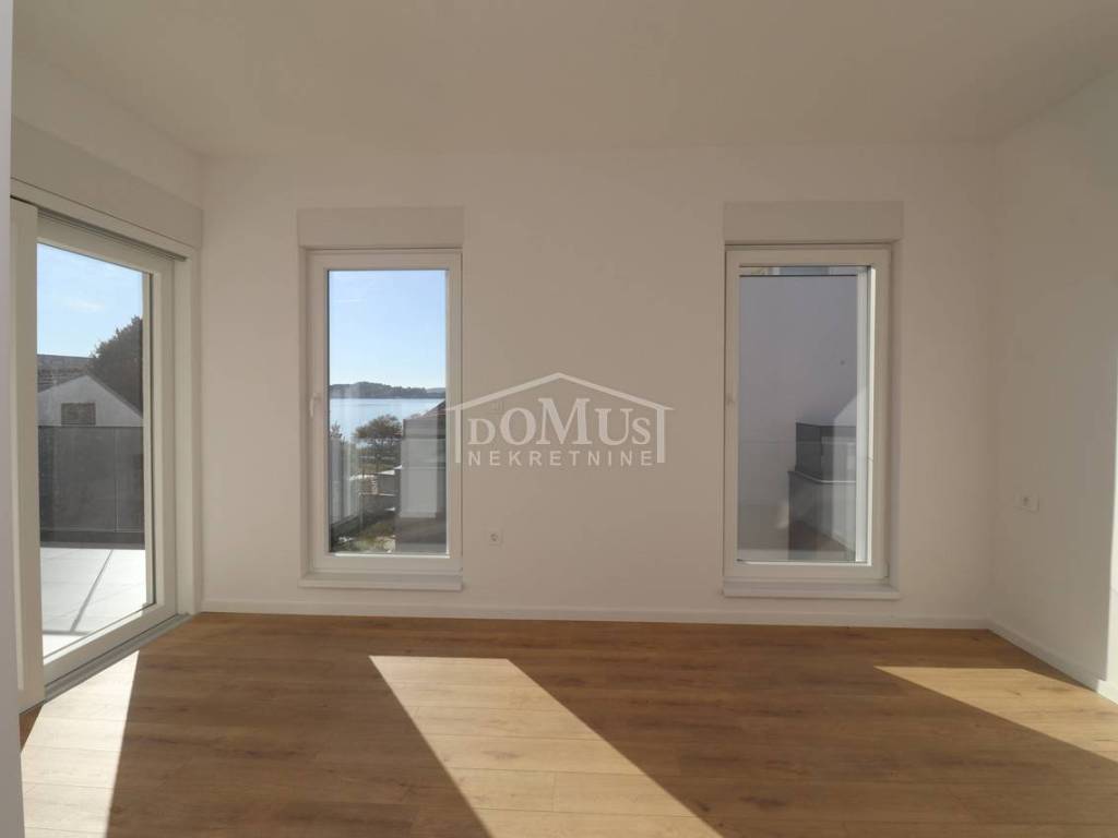 Srima, 2nd row to the beach, new project, luxury apartments with open sea views, only 650m from the center. The residential building has three floors, a total of 8 residential units. The apartments are equipped with quality windows and doors with electric shutters and mosquito nets, security and fire doors at the entrance to the apartment, electric underfloor heating in the bathrooms, each room and living room are equipped with air conditioning and TV connection, modern sanitary facilities.