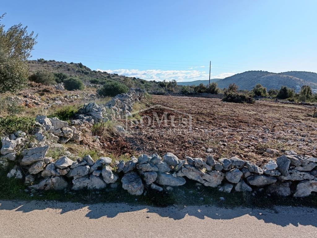 Građevinsko zemljište ukupne površine 1877 m2, iznad glavne ceste u Rogoznici, samo 800m od mora. Zemljište se po prostornom planu općine Rogoznica nalazi većim dijelom 1712m2 u građevinskoj zoni, dok rubni dio od 165m2 pripada poljoprivrednoj zoni. Zemljište je pravilnog oblika, širina uz prilazni put je 36m, a dužina je cca 48m. Na zemljištu se nalazi nekoliko stabala maslina, te nisko raslinje. Zemljište ima manji nagib sa kojeg se pruža lijep pogled na more, a kompletna infrastruktura se nalazi u blizini terena. Udaljenost od mora/plaže je 800m, a od centra Rogoznice udaljeno 1.5 km.