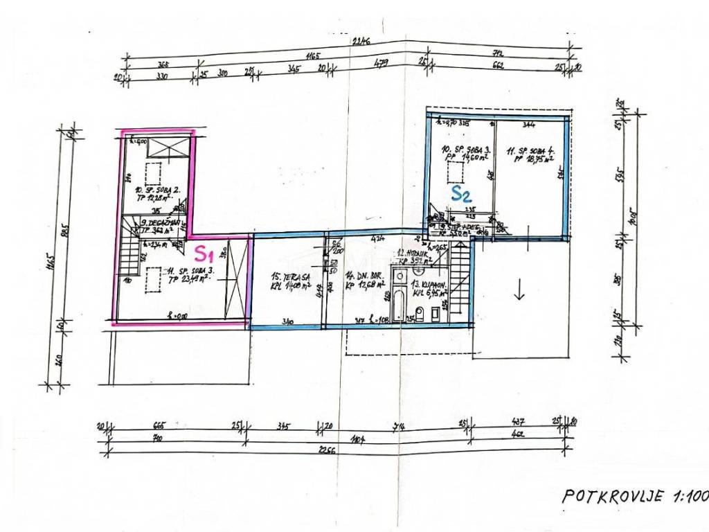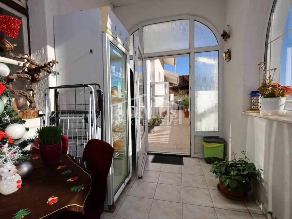Tribunj, city center, house on three floors (ground floor + 1st floor + attic) with a total usable area of 400.52 sqm. The house was originally stone, built before 1968 and partially renovated in 1986. It is fully furnished and ready to move in immediately. It has new woodwork and a partially new facade. The ground floor of the house has a smaller commercial space of 14.82 sqm, which has a separate entrance and consists of one room. The tavern with an area of 57.70 sqm can be partially converted into a garage, the storage room has an area of 30.34 sqm. On the ground floor there is a newly renovated apartment of 57.70 sqm (49.85 m2) consisting of a hallway, kitchen with dining room, bathroom and living room. There are two apartments on the 1st floor and in the attic, i.e. two two-story residential units, Apartment S1: living area 97.11 m², consists of terrace, veranda, kitchen with dining room and living room, bathroom, one bedroom and two smaller bedrooms in the attic. Apartment No. 2: With an area of 147.64 m², it consists of a spacious entrance area, bathroom, living room with kitchen and access to the terrace, bedroom and in the attic of three bedrooms, bathroom and terrace. Both apartments have spacious terraces overlooking the sea and the town of Tribunj. The house can be reached by car. The house does not have a garden, but there is the possibility of parking for four vehicles on the public surface. It is located 300 m from Zamalin beach.