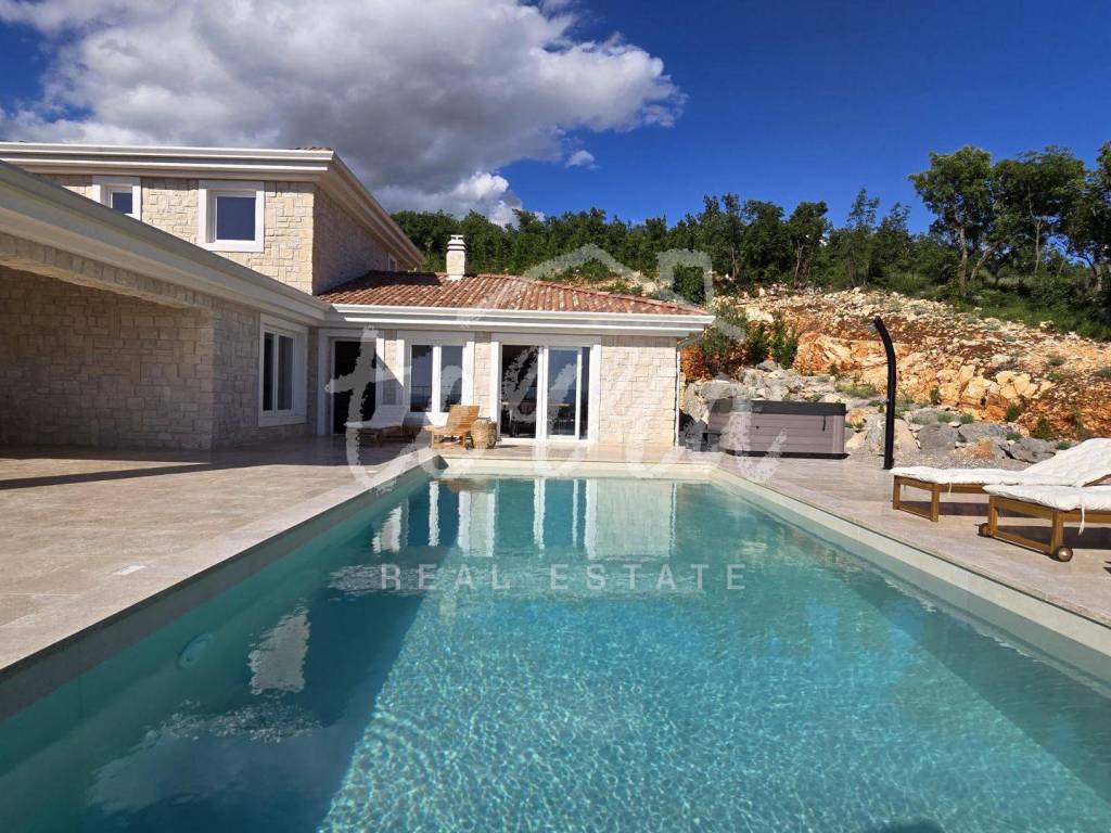 The stone villa has a rustic style, built of Istrian Kanfanar stone, with an area of 200 m2 + 36 m2 garage + 10 m2 engine room + 35 m2 heated swimming pool with water electrolysis and ceramics installed in the pool, while the total area of the plot, which is decorated with indigenous Mediterranean plants, olive trees and natural stone, is up to 1200 m2. The villa is located in one of the most beautiful places in Kvarner, in Jadranovo, and represents a perfect combination of tradition and luxury.