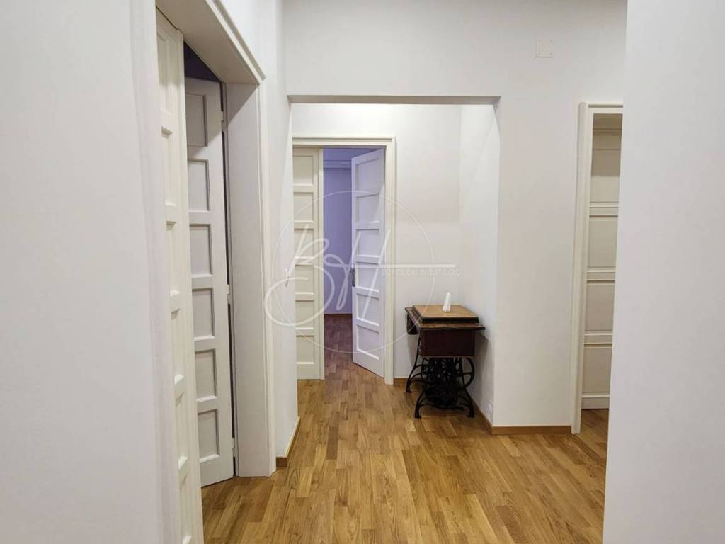 L'appartamento ha una superficie di 114,25 mq ed è composto da ingresso, cucina, soggiorno, tre camere da letto, due bagni e balcone.