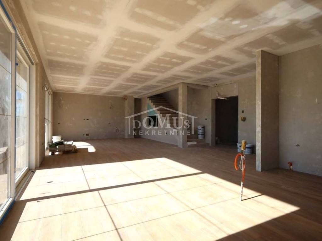 Newly built, comfortable family house with a total usable area of 375.95 m2 with a garage and an outbuilding in the yard and a swimming pool of 32 m2. In the basement of the house there is a hallway, a staircase, a pantry, a storage room and a tavern (common room), as well as a separate entrance to the kitchen with dining room, a hallway, a bathroom, two bedrooms, and an outside storage room. On the ground floor there is the main entrance of the house, where there is a garage of 37.50 m² with a storage room, a staircase, a toilet, a large living room with kitchen and a dining room with access to a large terrace of 45.25m2. An internal staircase leads to the 1st floor where there is a hallway, bathroom, laundry room, 3 bedrooms, each with its own wardrobe and access to the terrace. One of the rooms has a private bathroom. The plot has an area of 1,193 m2, the yard is fully fenced and has cascading gardens, a swimming pool and an outbuilding of 7.8 m2 and covered terraces of 22.82 m2. The house is in good condition and is equipped with underfloor heating via a heat pump and air conditioning. The price refers to the current construction status and is negotiable for a completely finished building (including facade) and received usage permits. The house is 4.4 km from the sea and 11 km from Šibenik.