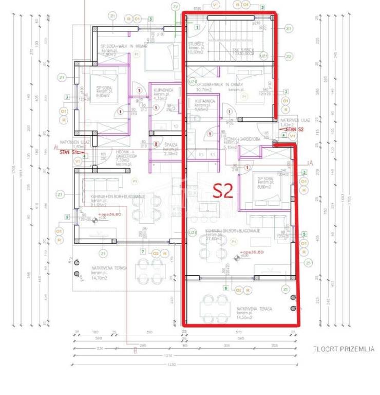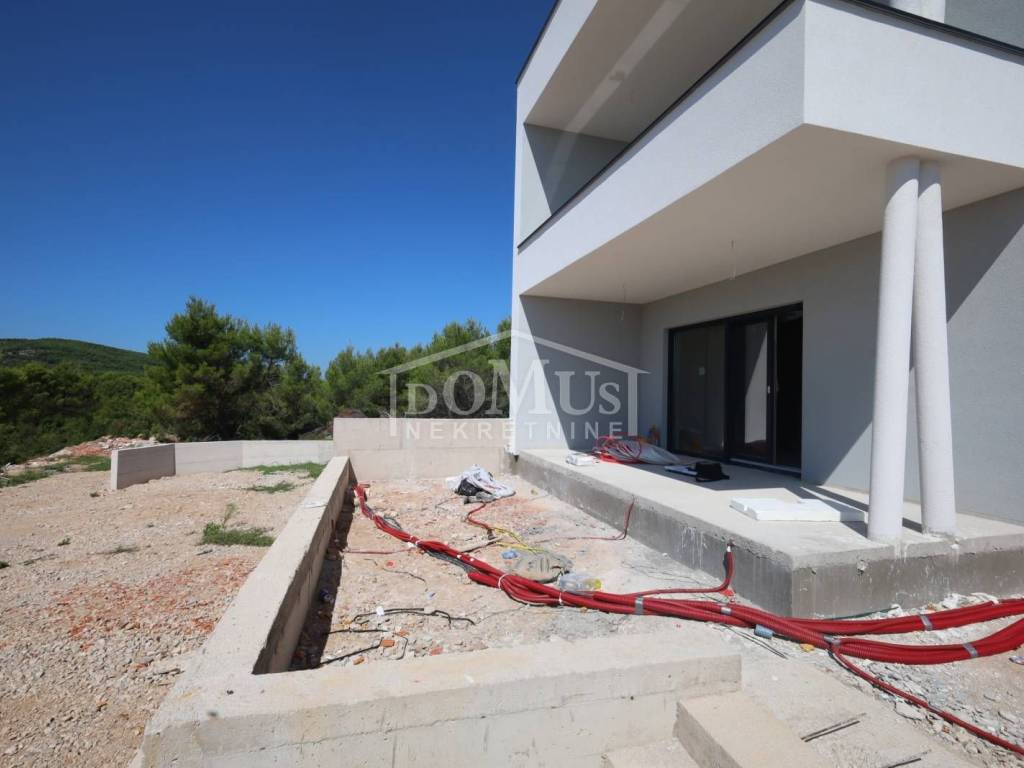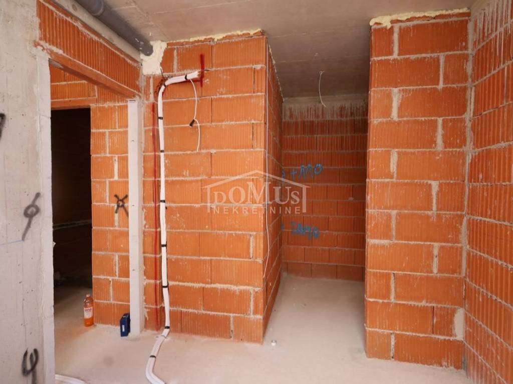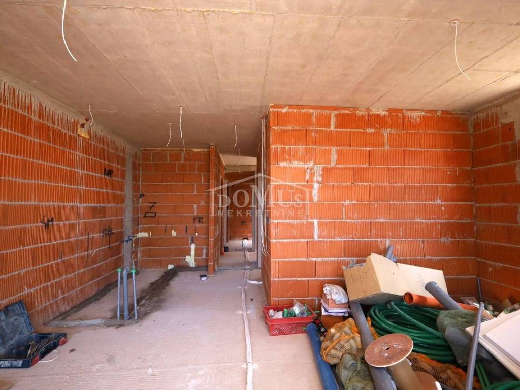 Newly built, in a quiet location, a comfortable 2-bedroom apartment on the ground floor with a terrace, courtyard and parking. The apartment is located in a small residential building with a total of 4 apartments. It has a modern design and functional layout with a total of 86.07m2 of usable area. The apartment consists of two bedrooms, a bathroom, a hallway and a spacious kitchen with a dining area and living room as a whole, with an access to a covered terrace of 14.50 m2 and an uncovered terrace of 30.49 m2. The apartment is equipped with air conditioning (bedrooms and living room), underfloor water heating throughout the apartment, an electric stove "Valiant", PVC joinery with mosquito nets, security entrance doors, and high-quality ceramics and sanitary ware. The apartment has a garden of 60.42 m2 and a parking lot of 25m2. The apartment is located 2000m from the beach, and 1600m from the center.