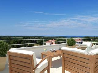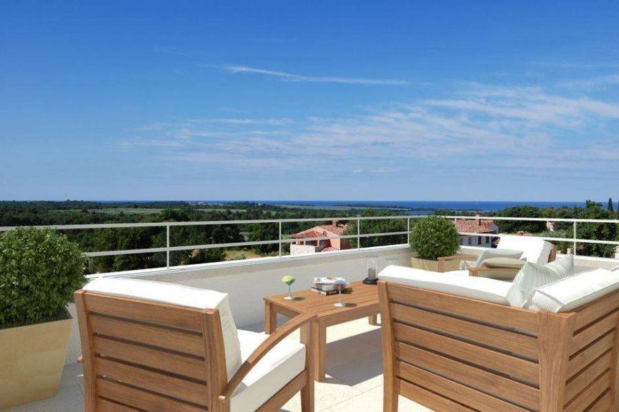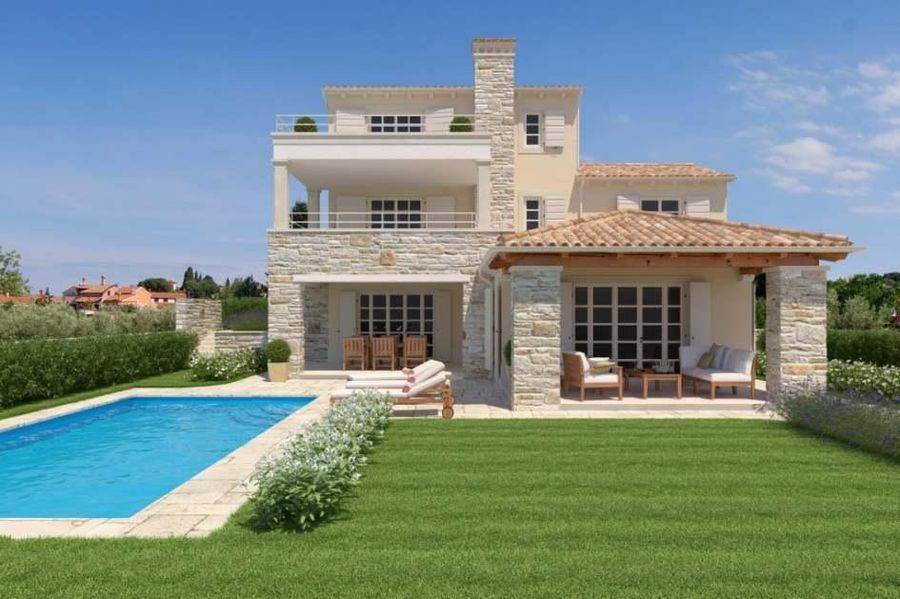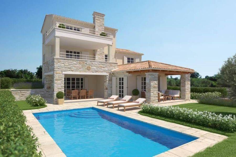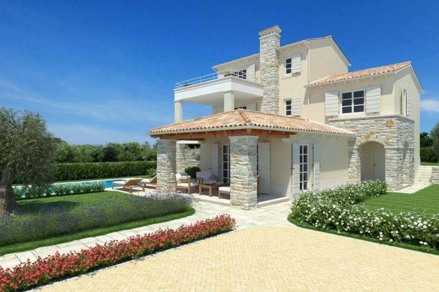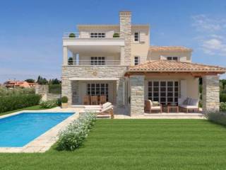 Mediterranean properties in Steinhaus style: Modern Villa with traditional elements in sea view Location This property is a luxurious new building project in local architectural style in Istria - Region Novigrad / Porec. The living / usable area is approximately 220 m2 - the land has an area of ​​658 m2. Disposition: Ground floor: Entrance hall, living room, kitchen with dining area, toilet, technical and storage room, two covered terraces 1st floor: two bedrooms, two bathrooms, two dressing rooms, covered terrace 2nd floor: bedroom, bathroom, wardrobe, terrace The Construction is carried out by a renowned company. On the final equipment can be taken currently still influence. No commission for the buyer!