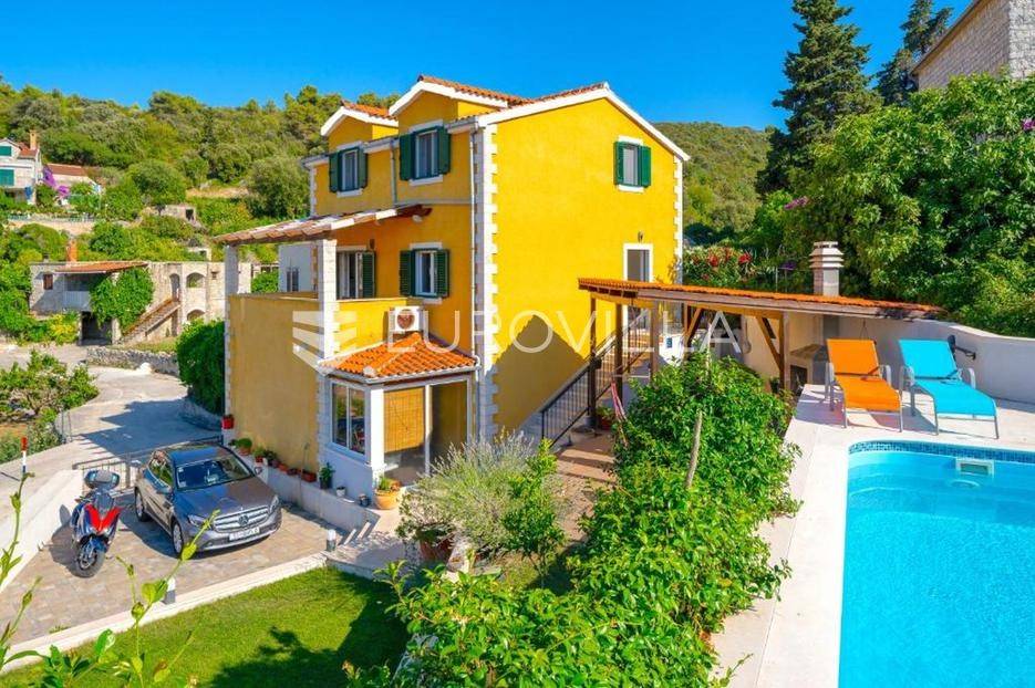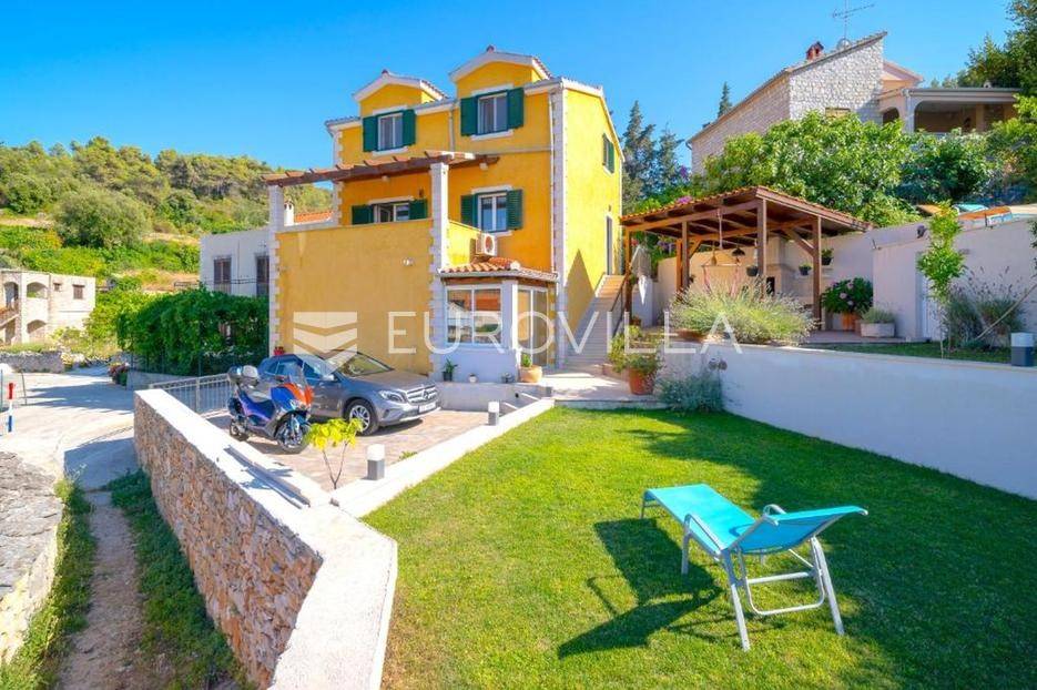 Brač, Splitska, prodaje se kuća ukupne površine 170 m², sastoji se od suterena, visokog prizemlja i kata, smještena na mirnoj i atraktivnoj lokaciji, svega 200 metara od mora, s prekrasnim pogledom na more.Raspored i sadržaji:· Suteren: studio apartman· Visoko prizemlje i kat:dvoetažni trosobni apartman prostranog i funkcionalnog rasporeda· Vanjski natkriveni roštilj - savršen za druženja· Bazen - za potpuni komfor i uživanje tijekom cijelog ljeta· Gospodarska zgrada površine 37 m² - dodatni prostor za spremište, radionu ili konobuKuća je smještena u pitoresknom mjestu Splitska, poznatom po miru, čistom moru i autentičnom mediteranskom ambijentu. Idealna je za obiteljski odmor, cjelogodišnje stanovanje ili kao investicija za turistički najam s odličnim potencijalom.Za više informacija i dogovor oko obilaska - dostupno na upit.