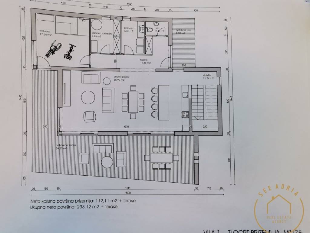 È in vendita una bellissima villa moderna su 2 piani nelle vicinanze di Parenzo. Il piano terra è composto da un ampio soggiorno, cucina e sala da pranzo in versione "open space" fino a 55 mq, un angolo benessere per il divertimento, un locale tecnico, una lavanderia e un bagno per gli ospiti. Al primo piano ci sono quattro camere da letto en suite, ognuna con il proprio bagno e un terrazzo di 58 mq.