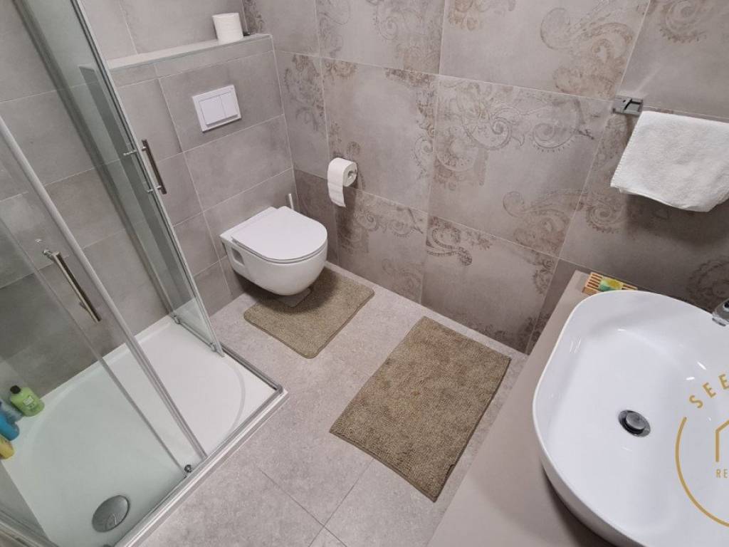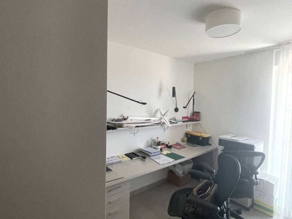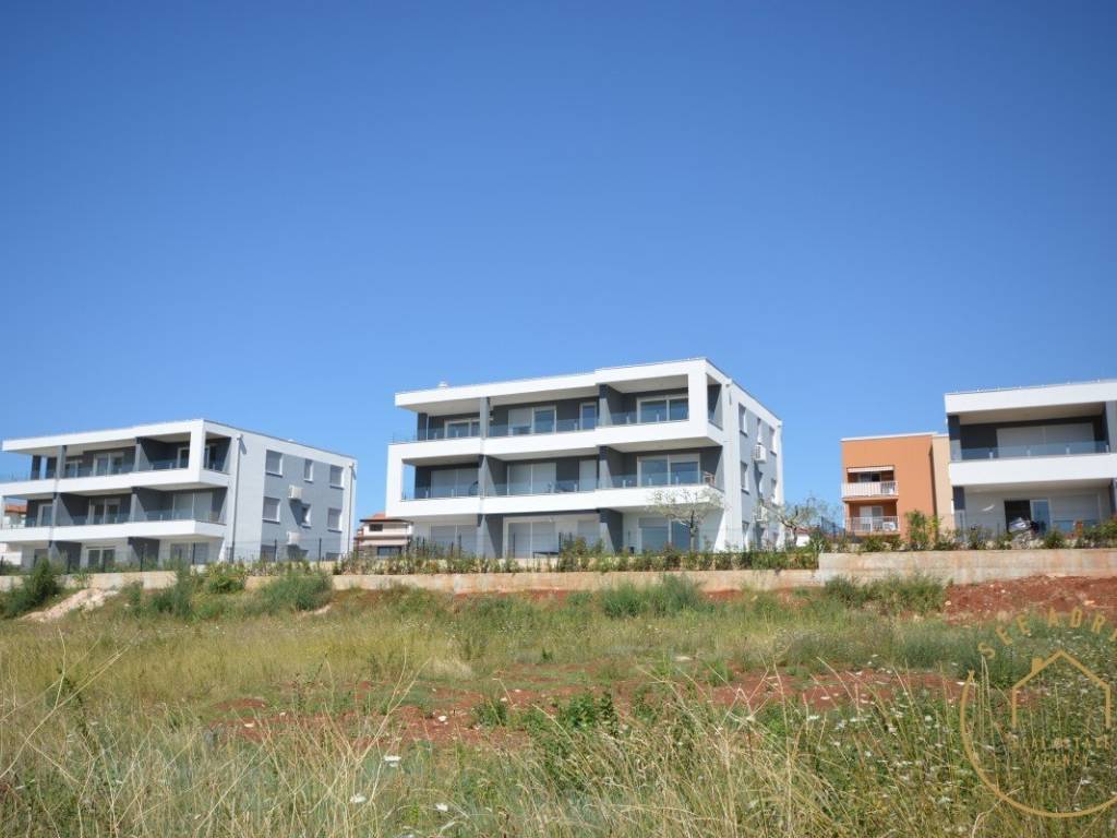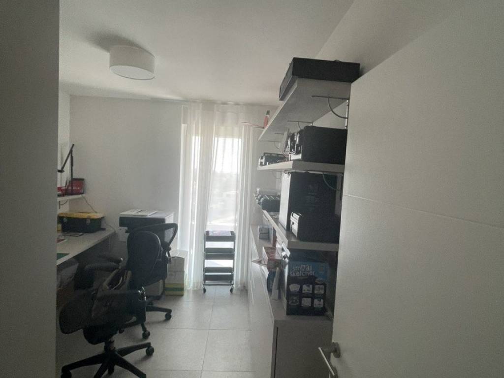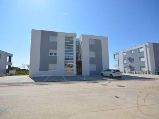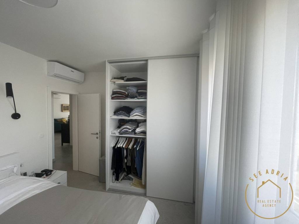 L'appartamento è composto da un soggiorno con cucina open space di 44,75 mq, tre camere da letto di cui una con il proprio bagno, armadi separati e ripostiglio. L'appartamento si trova al secondo piano di un edificio residenziale ed ha una superficie di 119,95 mq. Lungo la cucina, il soggiorno e la camera da letto si estende un ampio terrazzo con vista mare, per una superficie totale di 28,59 mq.