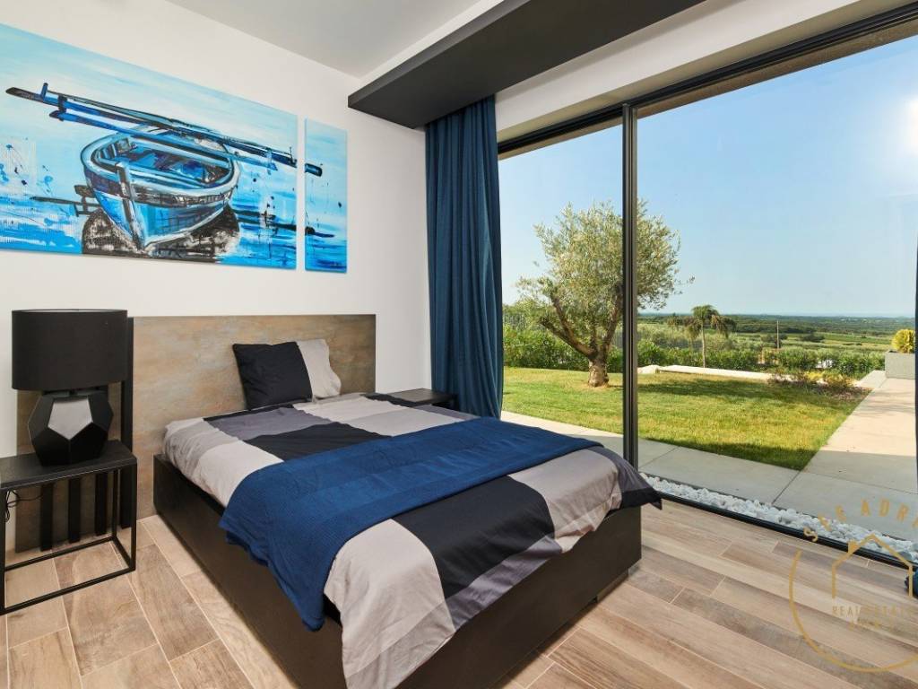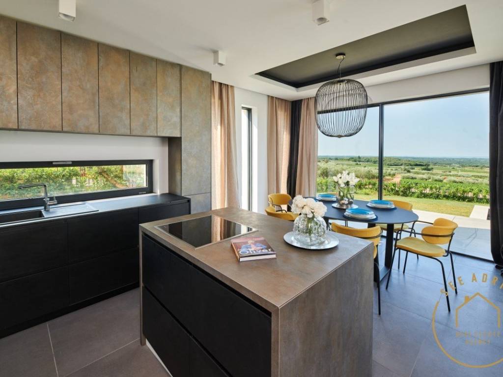 La casa ha una vista fantastica su vigneti, uliveti e mare, ed è situata a 220 metri sul livello del mare ed il terreno digrada gradualmente verso il mare, quindi i tramonti sono qualcosa di bellissimo. La casa si trova a 12 km da Parenzo e circa 2,5 km dal centro di Visignano, dove si trovano negozi, ristoranti e altre strutture. La distanza dall'autostrada è di soli 2 km, e dagli aeroporti vicini della zona come segue: Pola 60 km, Trieste 110 km, Venezia 220 km, Lubiana 150 km e Zagabria 250 km.