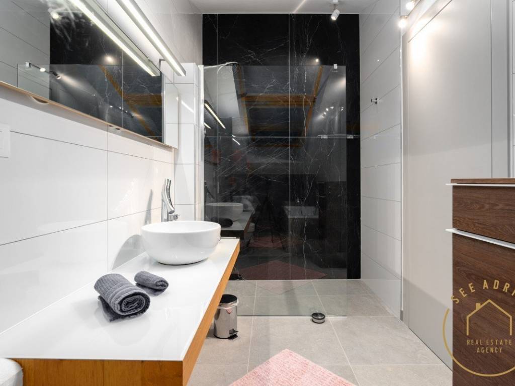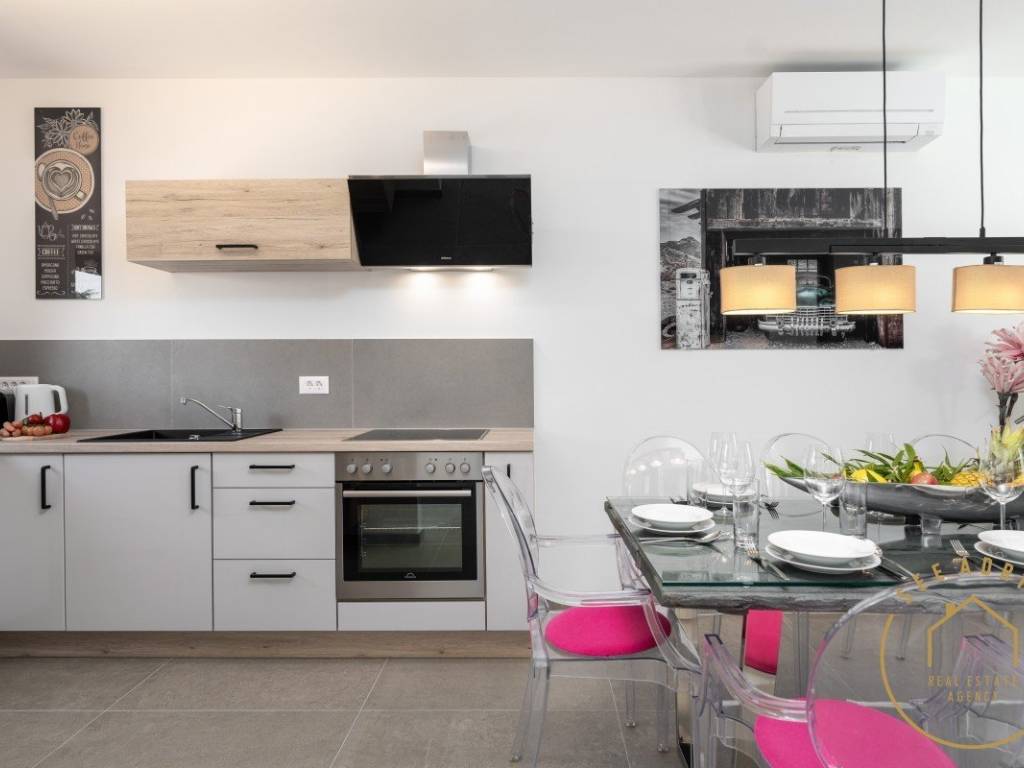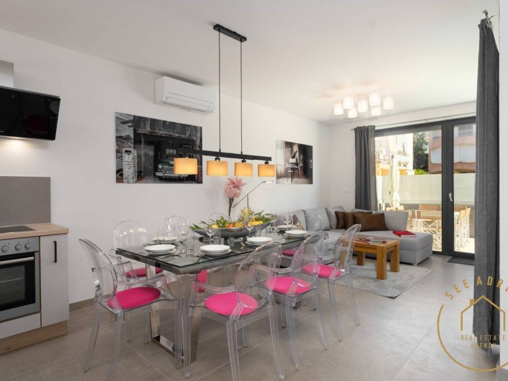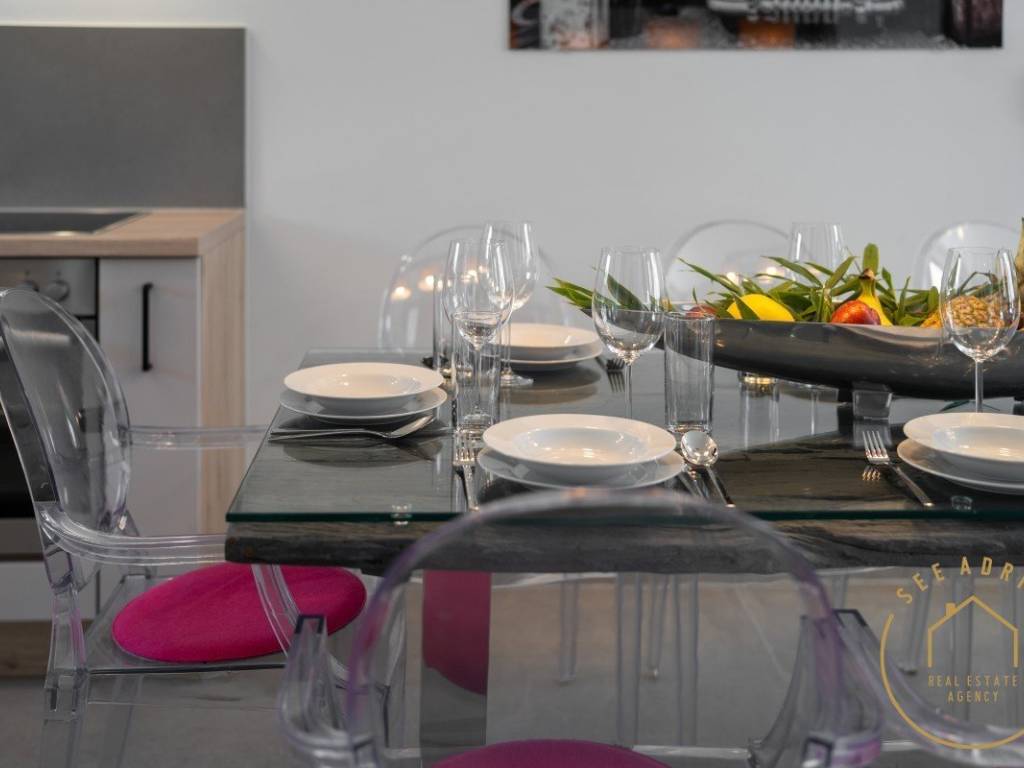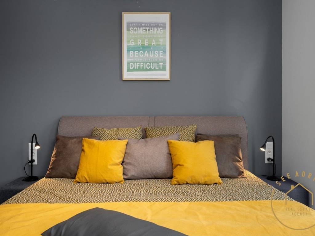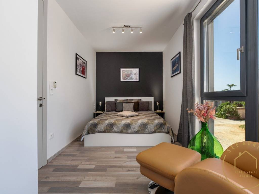 In vendita una casa a schiera con piscina privata. Si trova nel centro di Funtana, a solo un chilometro dalla spiaggia. Al piano terra si trovano la cucina, la sala da pranzo e il soggiorno con accesso a una terrazza privata con piscina. Al piano terra si trovano anche un ripostiglio e un bagno di servizio. Il primo piano è composto da due camere da letto con letti matrimoniali e un bagno. Anche il secondo piano ospita due camere da letto e un bagno. I piani sono collegati da una scala interna.