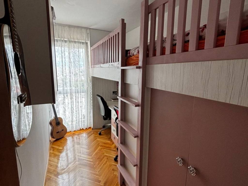 Stan se sastoji od 3 spavaće sobe, dnevnog boravka, kuhinje s blagovaonicom, hodnikom, kupaonicom i WC-om te dvije lođe koje su ostakljene. Orijentacija stana je Južna, izuzetno svijetao i topao.
