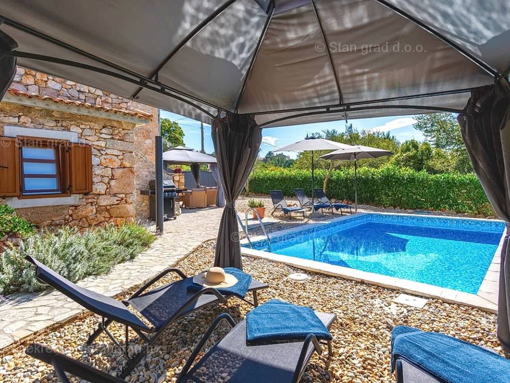 Dall'ampia offerta immobiliare nell'Adriatico settentrionale, l'agenzia Stan Grad Immobilien si distingue per la sua lussuosa villa al mare nell'attraente regione turistica dell'isola di Krk. La casa prominente si trova in una bella posizione non troppo lontano dal centro della famosa cittadina di Šilo. Strutturalmente parlando, questa è una casa a un piano. È stata realizzata una bella casa di buona qualità costruttiva su un totale di 3 piani funzionali. La superficie totale di questa casa è di 200 m2. Al piano terra si trova la taverna con camino e un luogo di socializzazione arredato in stile rustico. C'è anche un bagno al piano terra, al quale si accede attraverso il giardino e il garage. Una scala esterna conduce al primo piano della casa, dove si trova un soggiorno open space con cucina e sala da pranzo e un ampio terrazzo coperto. Tramite scala interna si accede alla mansarda dove troviamo un disimpegno, 4 camere e 2 bagni. Negli interni eccezionalmente curati e lussuosamente arredati dell'immobile in oggetto è stato installato un ricco set di dispositivi di ultima generazione. Della proprietà della casa fa parte anche un giardino accuratamente curato con una piscina particolarmente rifinita e zona solarium, oltre ad una zona per grigliate e relax. Fa parte della proprietà dell'immobile in oggetto la possibilità di posto auto in garage e di parcheggio scoperto di più veicoli in giardino. Oltre a tutto quanto sopra c'è da dire che la casa ha una bella vista sulla città e sulla natura. Questo immobile è di proprietà di una persona fisica e come tale, al momento del trasferimento della proprietà all'acquirente, è soggetto all'obbligo di pagare l'imposta sulla vendita dell'immobile nella misura del 3%. Il venditore immobiliare garantisce un rapido trasferimento dei diritti di proprietà e la corretta proprietà e documentazione tecnica. Contattateci con fiducia all'indirizzo dell'ufficio sull'isola di Krk e saremo il vostro partner per l'acquisto sicuro di immobili nel Quarnero. Se decidi di fare affari con noi ed eventualmente acquistare un immobile, i nostri agenti ti aiuteranno a registrare la proprietà della casa e ad altri compiti amministrativi necessari.