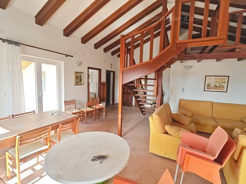Offriamo un appartamento di altissima qualità per un soggiorno turistico nell'Adriatico settentrionale sulla destinazione solitamente desiderabile del Quarnero, l'isola di Krk. L'appartamento menzionato si trova in una posizione urbanizzata e di alta qualità non lontano dal mare e dal centro della città di Krk. Considerando la proprietà per tipologia, si tratta di uno spazioso appartamento su un piano. In palazzina di pregio, l'appartamento si trova al 1° piano. La superficie totale di questo appartamento è di 105 m2. La suddetta superficie comprende un ingresso, un soggiorno e una cucina con sala da pranzo, 2 camere da letto, un bagno e tre terrazzi. Inoltre è importante notare che l'appartamento dispone di un soppalco che può essere allestito secondo i desideri del nuovo proprietario. L'interno della proprietà è molto ben tenuto e completamente attrezzato con tutti i dispositivi tecnici necessari e mobili di qualità. La proprietà di tale appartamento prevede anche la possibilità di usufruire della parte comune del cortile dell'edificio in questione, dove si trova la piscina ed una zona solarium. Di proprietà dell'appartamento è presente un posto auto per parcheggiare due auto. In aggiunta a quanto sopra va notato che l'appartamento è orientato in modo tale da offrire una bella vista sul bellissimo paesaggio costiero e sugli immediati dintorni dell'insediamento. Questo appartamento è di proprietà di una persona fisica, quindi l'acquirente è tenuto a pagare l'imposta sulle vendite pari al 3% quando ne trasferisce la proprietà a suo nome. Il venditore immobiliare garantisce un rapido trasferimento dei diritti di proprietà e la corretta proprietà e documentazione tecnica. Venite a trovarci sull'isola di Krk e assicuratevi che la vostra soddisfazione sia la nostra priorità. Se riponi in noi la tua fiducia, l'agenzia Stan Grad Immobilien sarà felice di aiutarti a trasferire a tuo nome i diritti di proprietà di questo immobile e la fattura per i suoi allacciamenti e servizi.
