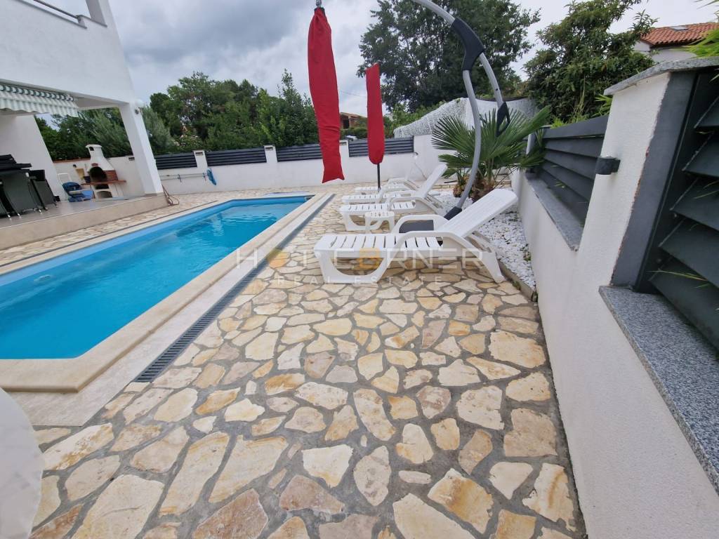 In vendita una nuova e moderna casa indipendente con 2 appartamenti a Krnica, Marčani, a 2,5 km dal mare. La casa è stata costruita su un terreno di 420 m2. Un appartamento si trova al piano terra della casa e l'altro al primo piano. Ogni appartamento ha una superficie abitabile di circa 90 m² ed è composto da un ingresso, un ampio soggiorno con cucina e zona pranzo, 2 camere da letto, un bagno con WC e una terrazza.
