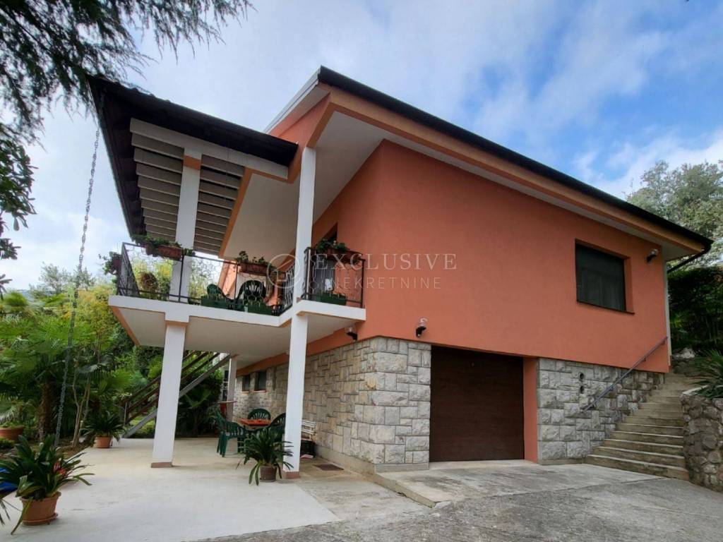 LOVRAN - For sale is a house in a fantastic location, near the sea and the center of Lovran. The house is located on a large plot of about 1200m2 and is surrounded by palm trees and Mediterranean plants, giving the house privacy and an oasis of peace. It consists of two apartments, a garage and a large terrace. There is a view of the sea from the terrace. The house was renovated in 2014, so it has a new roof, new facade, electricity and water installations and new carpentry. There are solar panels on the roof for heating water. The yard is spacious and fenced on all sides. Neatly maintained.