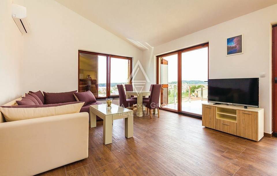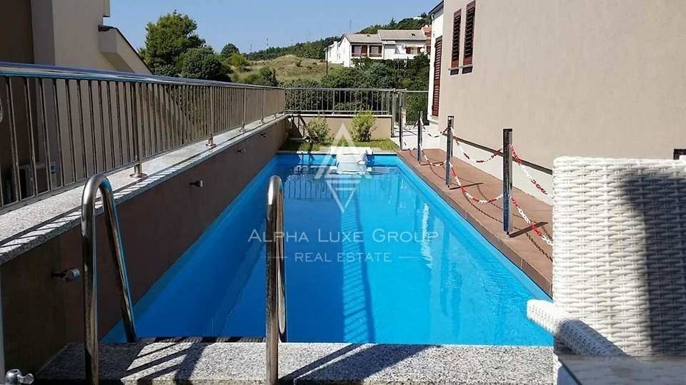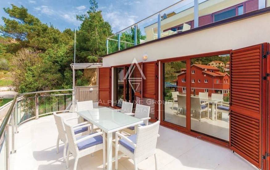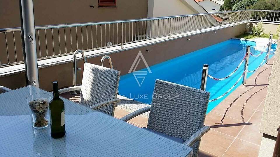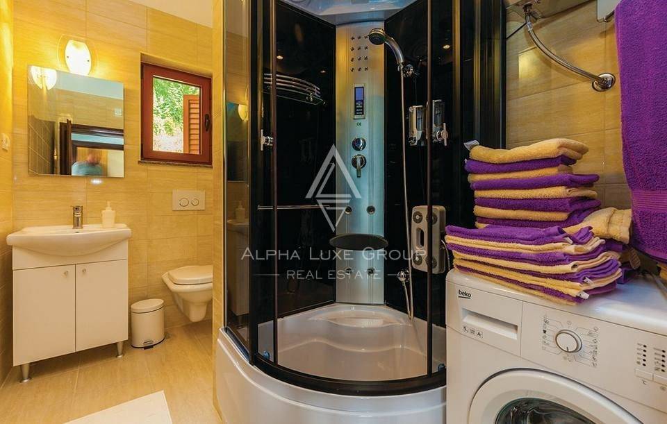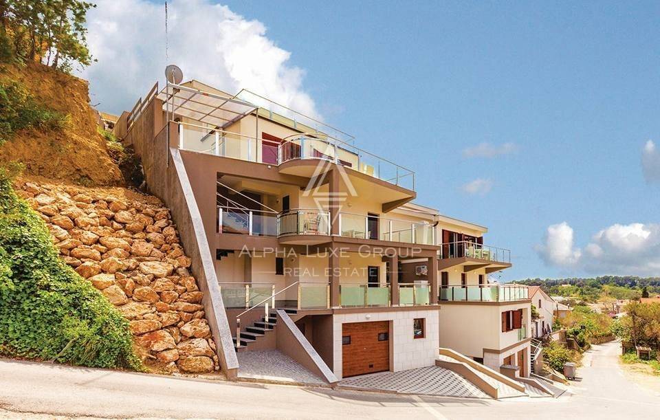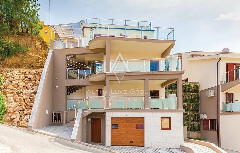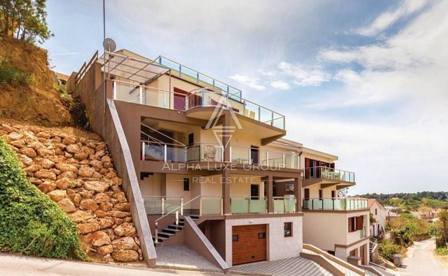 Villa no. 1 - si compone di quattro piani. Nel seminterrato ci sono due garage, bagno, wc e piccola cucina di 60 m2. Al primo piano si trova un appartamento composto da una camera da letto, cucina con sala da pranzo e soggiorno e bagno. Al secondo piano si trova un appartamento di 40 m2 composto da una camera da letto e cucina con soggiorno e bagno. Dall'altra parte del terzo piano si trova un ampio appartamento di quattro camere da letto con accesso alla piscina e in alto un altro appartamento di 60 m2. Tutti gli appartamenti dispongono di ampie terrazze con splendide viste sul mare.