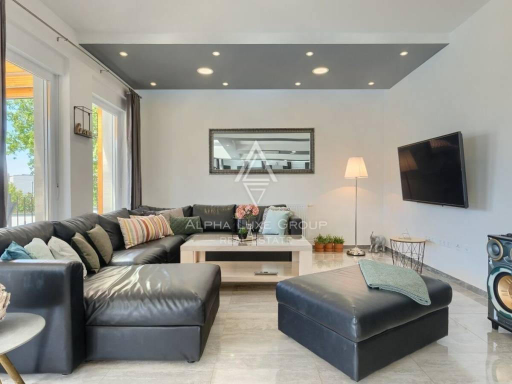 La casa dispone di cinque camere da letto, un soggiorno, una cucina con sala da pranzo e una sala di intrattenimento con una superficie abitabile di 400 m2 e un cortile di 1000 m2.