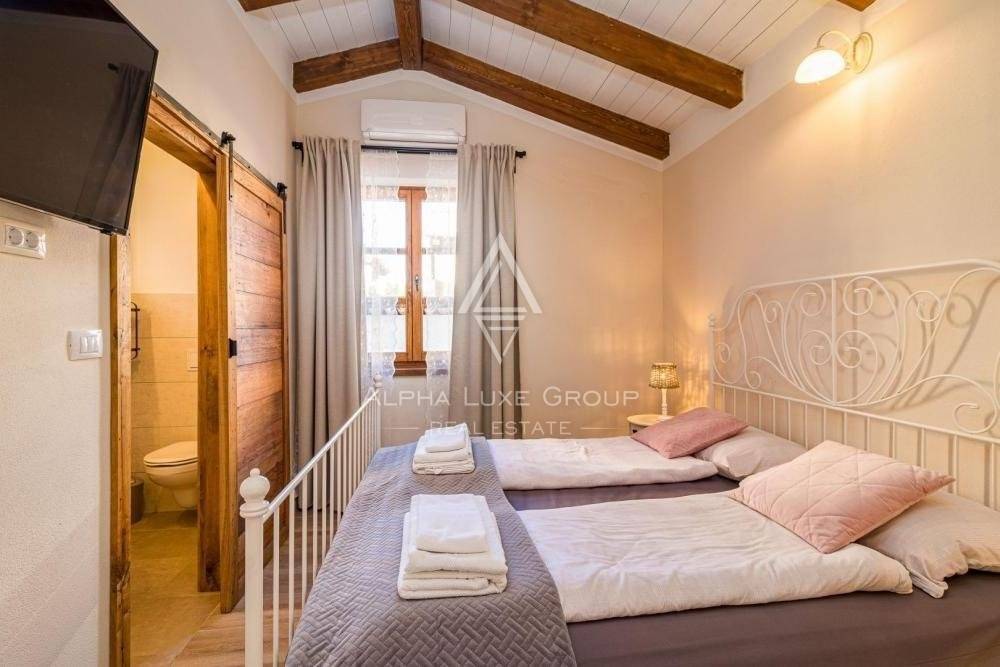 Una splendida villa è in vendita nell'Istria centrale. Questa splendida proprietà si trova nell'affascinante città di Svetvinčent, che vanta una ricca storia medievale. La villa si trova in un villaggio appartato con solo una manciata di altre case vacanza e tenute, garantendo completa privacy e tranquillità.