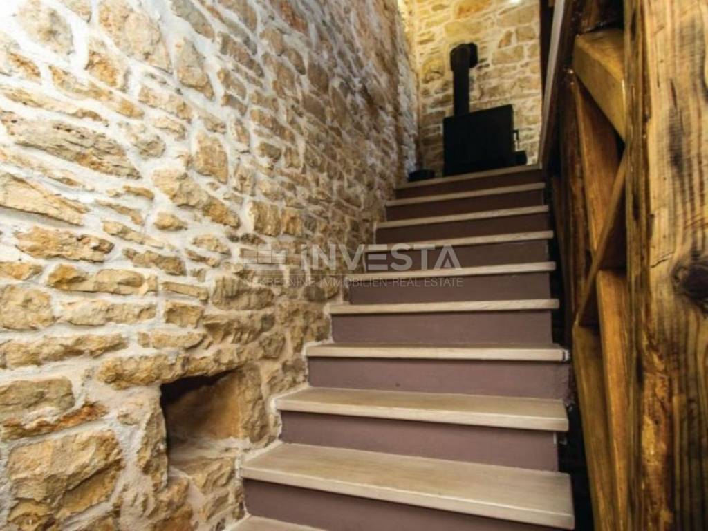 La tradizionale casa in pietra è stata completamente ristrutturata, preservando le caratteristiche originali che le conferiscono un fascino speciale. Pur emanando un'atmosfera autentica istriana, è dotata di servizi moderni che soddisfano le esigenze della vita contemporanea. Tutti e tre i piani sono progettati in modo funzionale e confortevole, e la terrazza all'ultimo piano offre una vista sul paesaggio naturale dominato dal verde e dalla tranquillità.