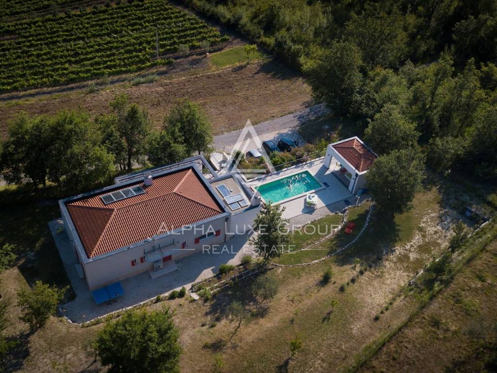 Villa con piscina di 110 m2 di superficie abitabile e 5.111 m2 di giardino nell'Istria centrale, a circa 3 km dal centro storico di Montona. La casa è circondata da 2500 m2 di giardini meticolosamente progettati per vacanze in famiglia attive e piacevoli. Si trova sul lato sud, con una bella vista e molta luce solare. Per il relax e il divertimento al sole, le terrazze organizzate circondano la casa. A cento metri ci sono i primi vicini. I collettori solari riscaldano l'acqua della piscina. Gli animali domestici sono i benvenuti qui.