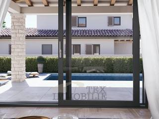 In vendita una splendida villa nella fase di Rohbau in un piccolo complesso di quattro ville indipendenti con piscine private. La villa rappresenta una superba combinazione di design moderno e funzionalità, situata su un terreno di 648 m², che garantisce privacy e spazio per il divertimento.