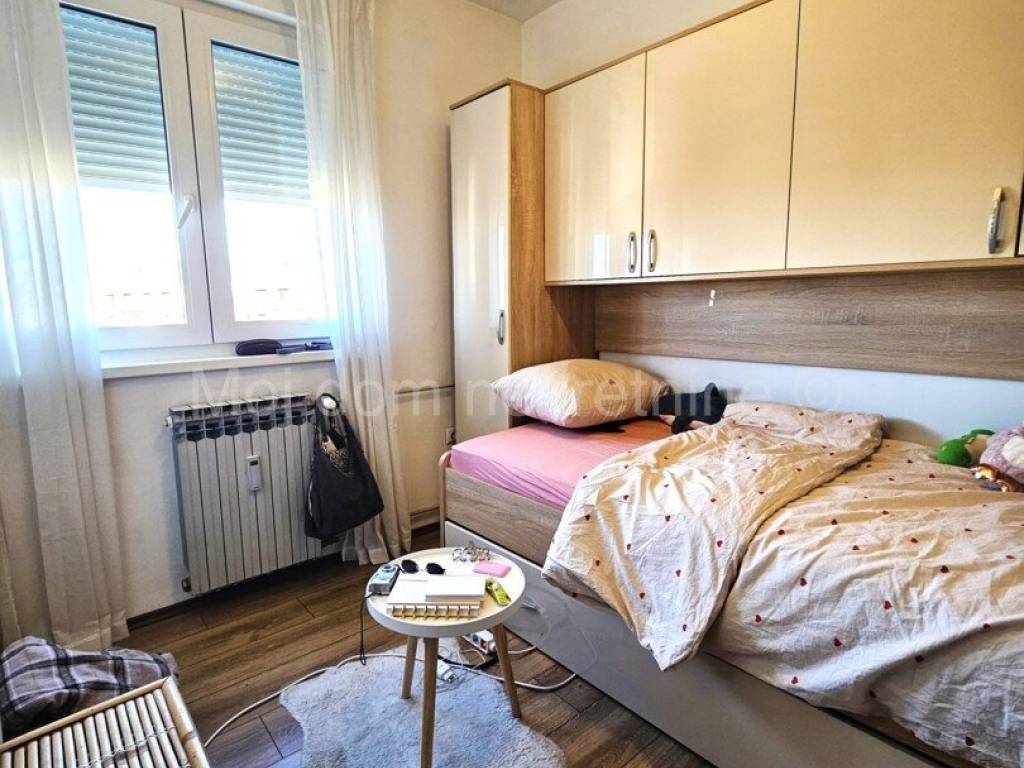 Prodaje se lijep 3 soban stan s loggiom na 5.katu zgrade s liftom. Stan je opremljen klima uređajem. Izrazito je svijetao radi svoje dvostrane orijentacije. Moguće je kupiti stan kompletno namješten. Pripada mu ostava u podrumu zgrade. Nalazi se u blizini škole, vrtića, javnog prijevoza i svih ostalih bitnih sadržaja. Energetski certifikat C.