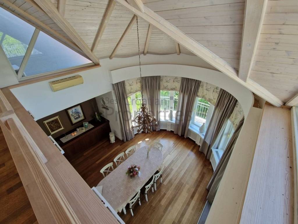 U visokom potkrovlju se nalazi: galerija/dnevni boravak, master spavaća soba s vlastitom kupaonicom, garderobom i izlazom na terasu, 2 spavaće sobe od kojih svaka ima svoju kupaonu i izlaz na zajednički balkon.