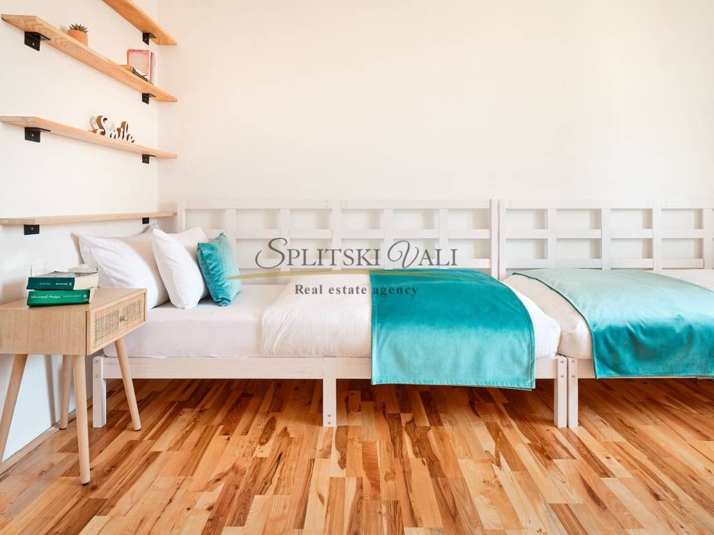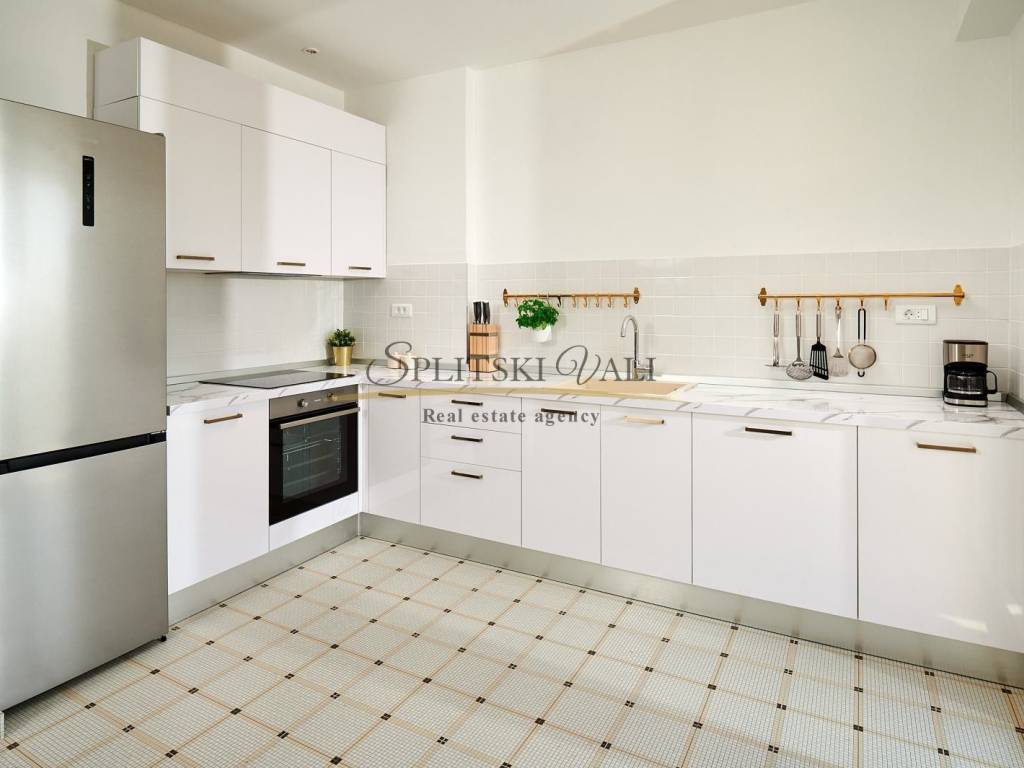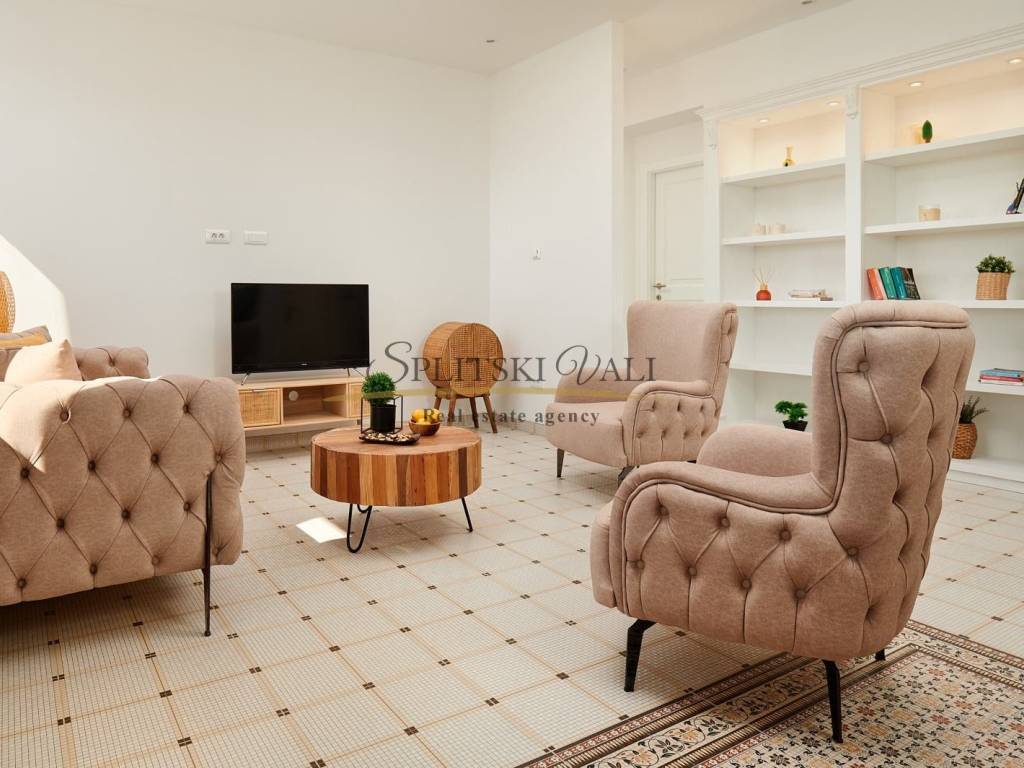 Posredujemo u prodaji iznimno kvalitetno renoviranog trosobnog stana od 105 m, smještenog na trećem katu manje stambene zgrade na jednoj od najpoželjnijih lokacija u Splitu Bačvicama.