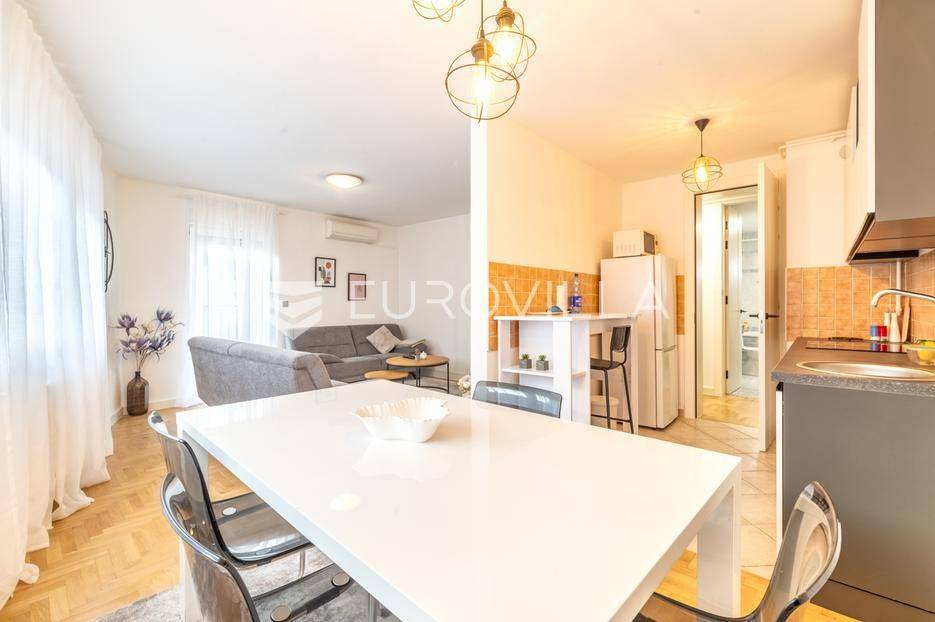 Stan se nalazi u II Zagorskoj ulici, jednoj od poželjnijih mikrolokacija Trešnjevke. Ulica je mirna i privatna, dok istovremeno pruža brz pristup svim važnim sadržajima.U neposrednoj blizini nalaze se:vrtići i osnovne školetrgovine, pekare, drogerije i tržnicadom zdravlja, ljekarne i ostale uslužne djelatnostiteretane, sportski centri i parkovitramvajska i autobusna stajališta na nekoliko minuta hodablizina Trešnjevačkog placa, kao i brzi pristup centru gradaII Zagorska je poznata po dobroj prometnoj povezanosti, sigurnom okruženju i blizini svih događanja koje nudi Trešnjevka - od restorana i kafića do rekreacijskih sadržaja.Dodatne informacijeStan je uredan, odmah useljiv i idealan za pojedince, parove ili manju obitelj koja traži kvalitetan, novouređen prostor na traženoj lokaciji.