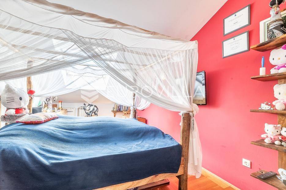 Svetice, dvoetažan peterosoban stan zatvorene površine 117.69 m2 na petom katu dobro održavane stambene zgrade s liftom.Prva etaža sastoji se od ulaznog hodnika, dnevnog boravka, kuhinje s blagovaonicom s izlazom na balkon, te spavaće sobe s balkonom i kupaonice. Gornja etaža sastoji se od uređenog hodnika, tri spavaće sobe, garderobe, te kupaonice.Stanu pripada spremište u podrumu površine 1.35 m2, te dva garažna parkirna mjesta ukupne površine 23 m2.Izvrsna lokacija, nadomak park šume Maksimir te sportskog centra Svetice, blizina javnog prijevoza, obrazovnih ustanova, te svih dodatnih sadržaja za kvalitetan život.Ostale informacije na upit.