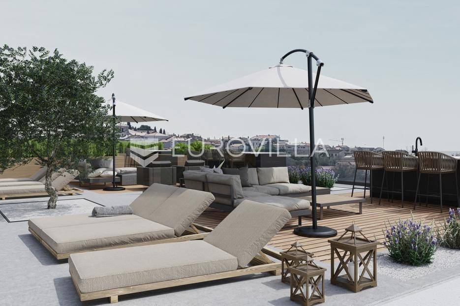 U Taru, nedaleko od centra, nalazi se novo naselje sa apartmanima.Stan oznake "D10" nalazi se na trećem katu stambene zgrade.Stan se sastoji od ulaznog hodnika, open space kuhinje, blagovaonice i dnevnog boravka s izlazom na terasu, 2 spavaće sobe od kojih jedna ima izlaz na balkon, kupaonice. Stan ima vlastitu krovnu terasu sa pripremom za jacuzzi, saunu, ljetnu kuhinju i 2 parkirna mjesta koja su uključena u cijenu.Podno grijanje u cijelom stanu, klima uređaj, kvalitetna talijanska keramika, Villeroy i Boch sanitarije.Za više informacija stojimo vam na raspolaganju.