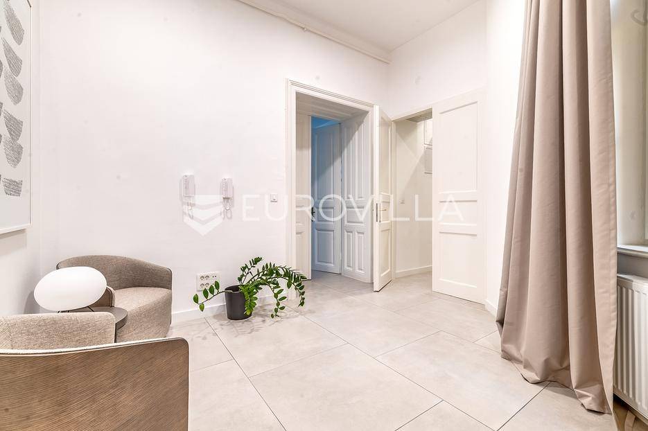 Berislavićeva ulica, strogi grada, poslovni prostor, ured 18,50 m2 s balkonom unutar prostora 72,00 m2 na prvom katu održavane poslovno-stambene zgrade.Sastoji se od ulaznog prostora, ureda s balkonom koji gleda na mirnu dvorišnu stranu, sjever, sanitarnog čvora i čajne kuhinje (zajedničko korištenje). Prostor je u potpunosti uređen i slobodan za zakup. U cijenu zakupa uključene režija. Na cijenu se obračunava PDV.Nalazi se u neposrednoj blizina javnog prijevoza i svih sadržaja potrebnih za kvalitetno poslovanje.Sve ostale informacije za upit.