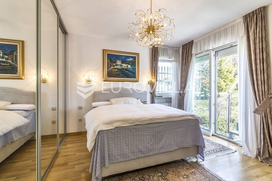 Šestine, prekrasna, odlično održavana, luksuzna obiteljska vila. Površine 550 m2 smještena na besprijekorno održavanom zemljištu 800 m2. Sagrađena 2019 god. Odličan raspored prostorija. Automatsko navodnjavanje vrta, videonadzor, alarm, klime, alu stolarija, odlična izolacija. Nalazi se na savršenoj lokaciji, nekoliko minuta automobilom do centra grada, preko Pantovčaka do Britanskog trga 10 min, preko Mlinova do Kaptol centra 10 min. Nalazi se također blizu internacionalne škole Kreativni razvoj. Garaža za dva automobila, vešeraj i teretana nalaze se u podrumu. U prizemlju kupaonica, kuhinja s ostavom, ogroman boravak s kaminom, velika blagovaonica. Zatvorena zimska terasa s prekrasnim pogledom. Sve prostorije izlaze na vrt. Na katu se nalaze četiri spavaće sobe, dvije kupaonice, garderoba, dnevni boravak. Vila je okružena sa ambasadama. Ostale informacije na upit.