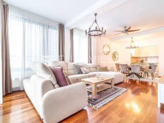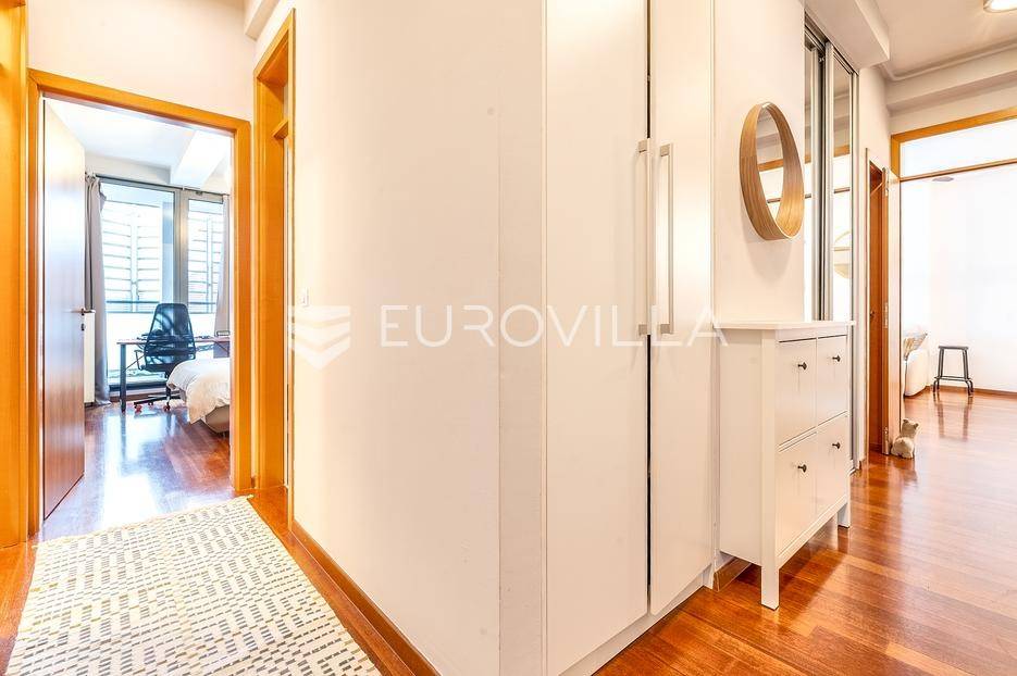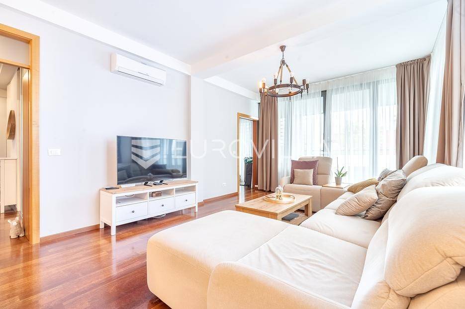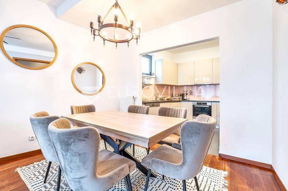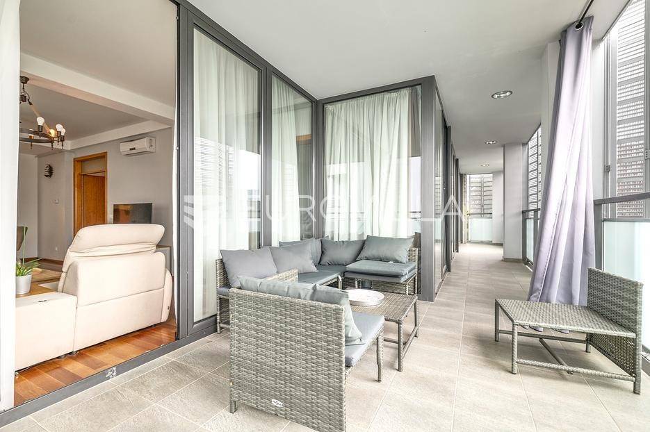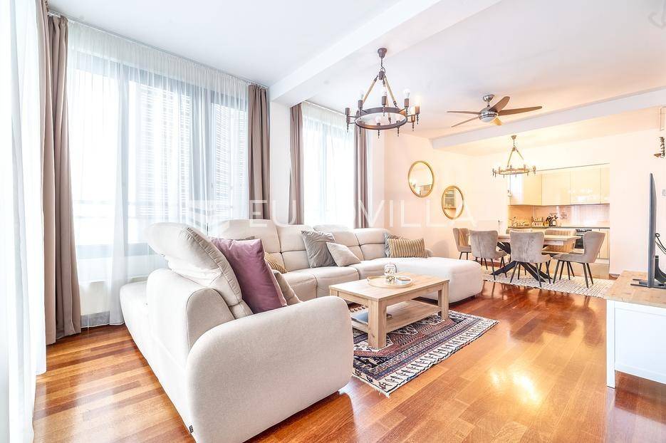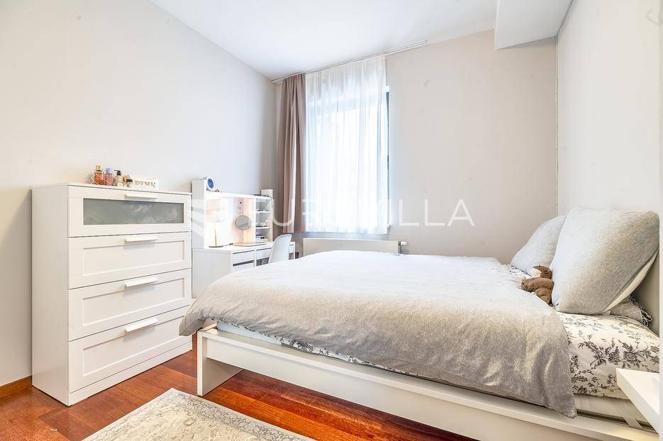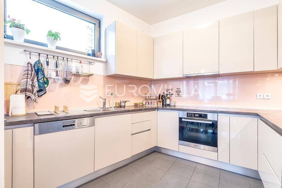 Zagreb, Ul. Sveti Duh, peterosoban stan zatvorene površine 132 m2 u prizemlju u manjoj stambenoj zgradi novije gradnje (2009.). Sastoji se od ulaznog hodnika s ugradbenim ormarima, open space dnevnog boravka s kuhinjom i blagovaonom, spavaće sobe s izlazima na prostranu loggiu, spavaće sobe, radna/dječja soba s izlazom na loggiu, master spavaće sobe s vlastitom kupaonicom s wc-om i walk-in garderobom i izlazom na loggiu, kupaonice s wc-om i ostave. Pripada mu dva vanjska parking mjesta 23 m2 (obračunski 11,5 m2), te spremište u podrumu zgrade 4 m2 (obračunski 2 m2). Ukupno NKP 145,50 m2. Grijanje etažno plinsko centralno, klimatiziran. Orijentacija jug istok zapad. Nalazi se u neposrednoj blizini autobusne zone, dućana, kao i svih ostalih potrebnih sadržaja. Ostale informacije na upit.
