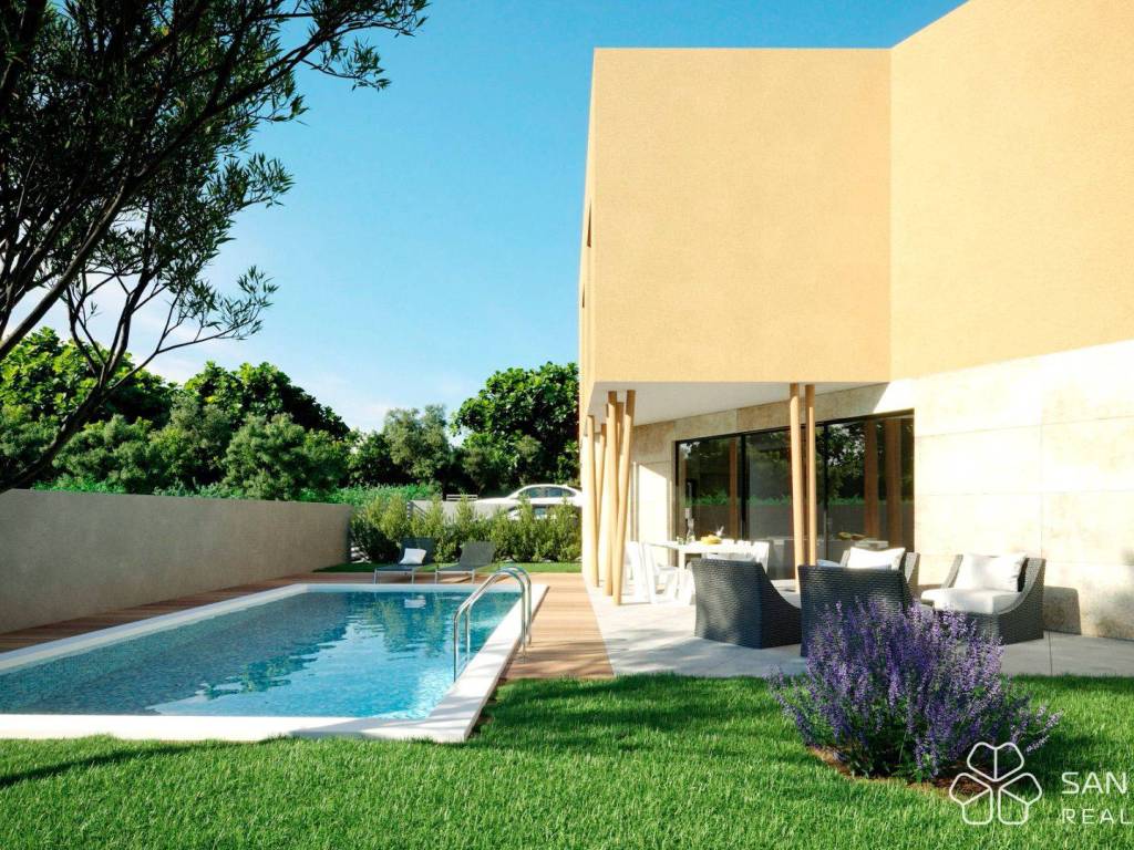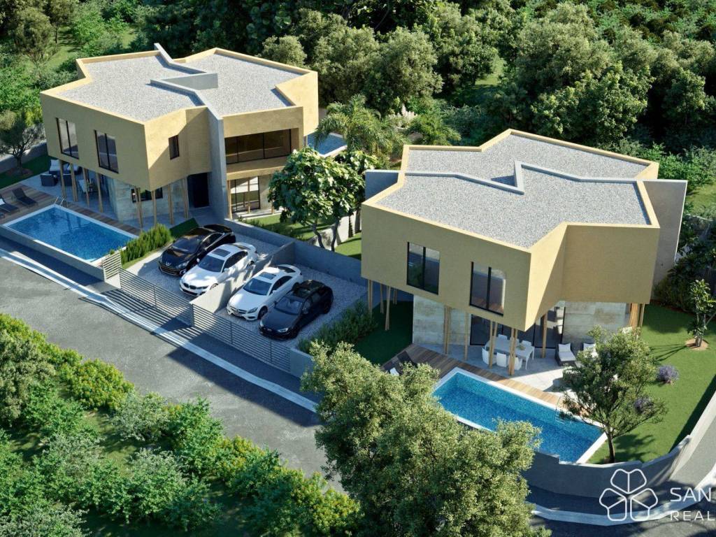 Villa 1 - total area 116 m2 (3 bedrooms + 2 bathrooms + WC + kitchen/dining/living room) + terrace 1 (13.5 m2) + terrace 2 (7.6 m2) + outdoor pool + 2 parking spaces = 445,000 EUR (price for one half of the house)
