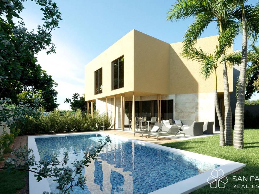 Each visually and technically modernly built villa consists of two residential units sold separately, with a total living area of 116 m2 each. Each unit consists of a ground floor and an upper floor with a flat roof.